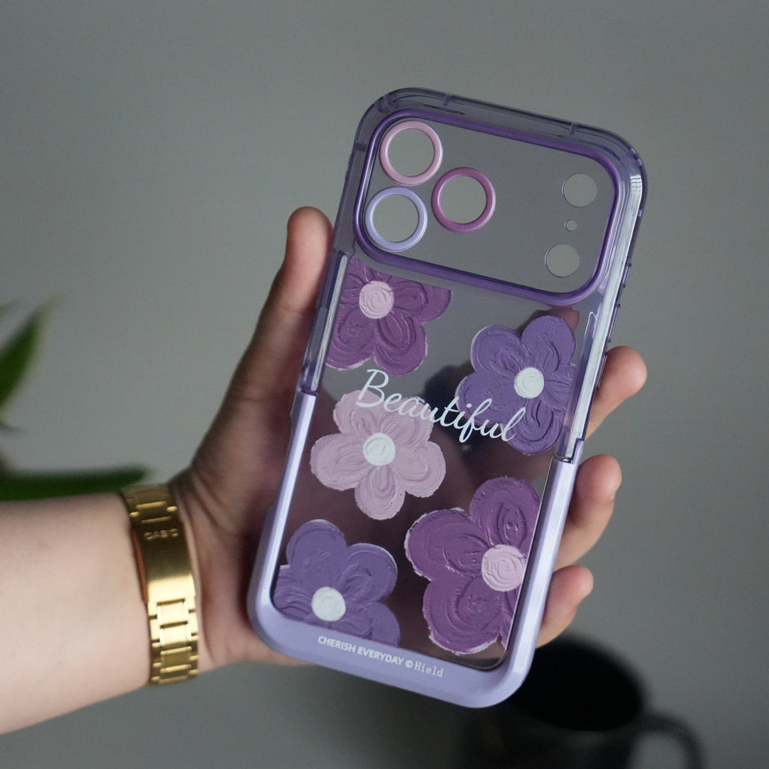 iPhone 15 Series Hollow Flipping Lens Bracket Case Cover ( Deep Purple )