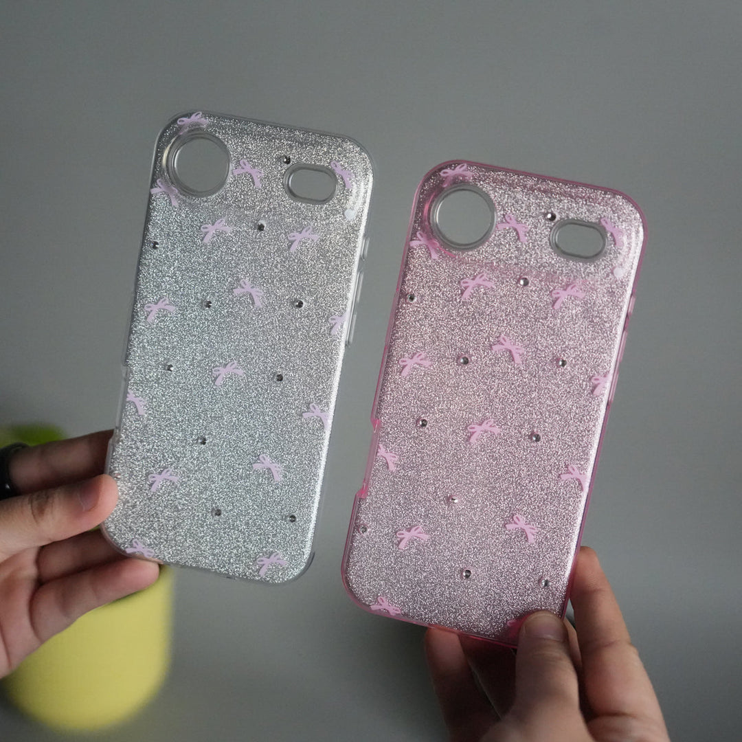 iPhone 17 Air Shimmer Bow Design Case | With Mobile Wrist Holder Charm