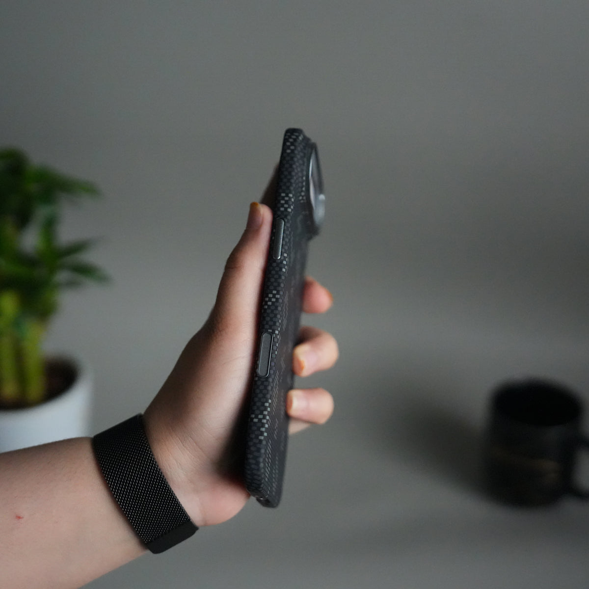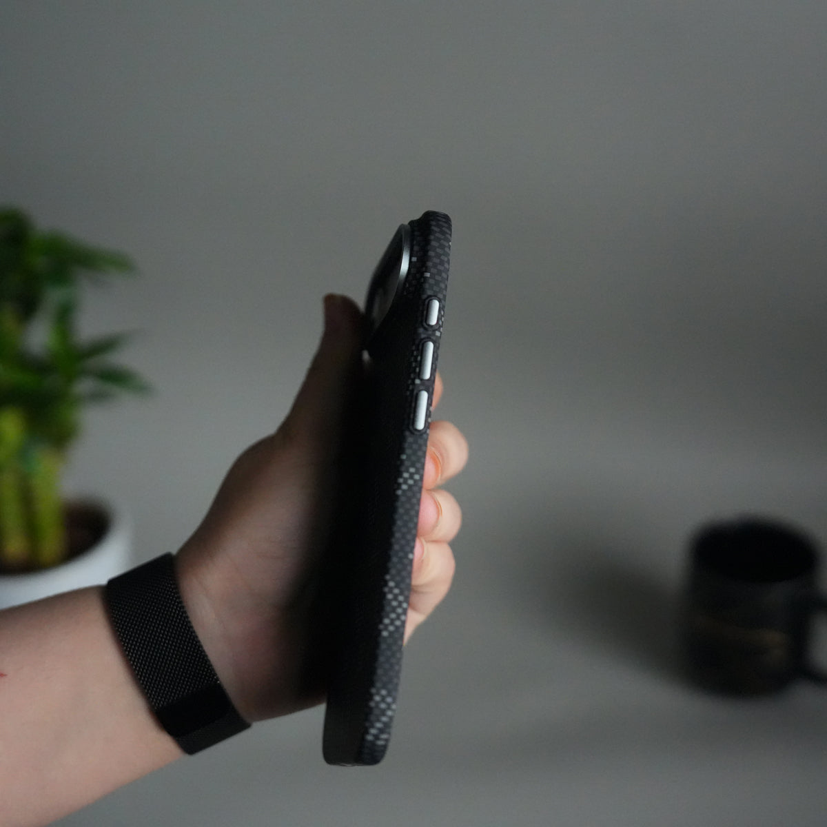 Protect your iPhone 17 Air with this premium Aramid Fiber case designed for strength, style, and wireless convenience. Crafted from lightweight yet durable aramid fiber, this cover offers a sleek, ultra-thin profile without compromising protection. The built-in Magnetic Charging Ring ensures seamless MagSafe & wireless charging compatibility, making it perfect for modern everyday use.