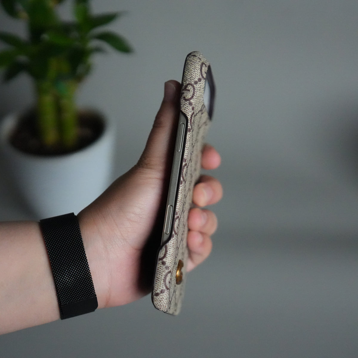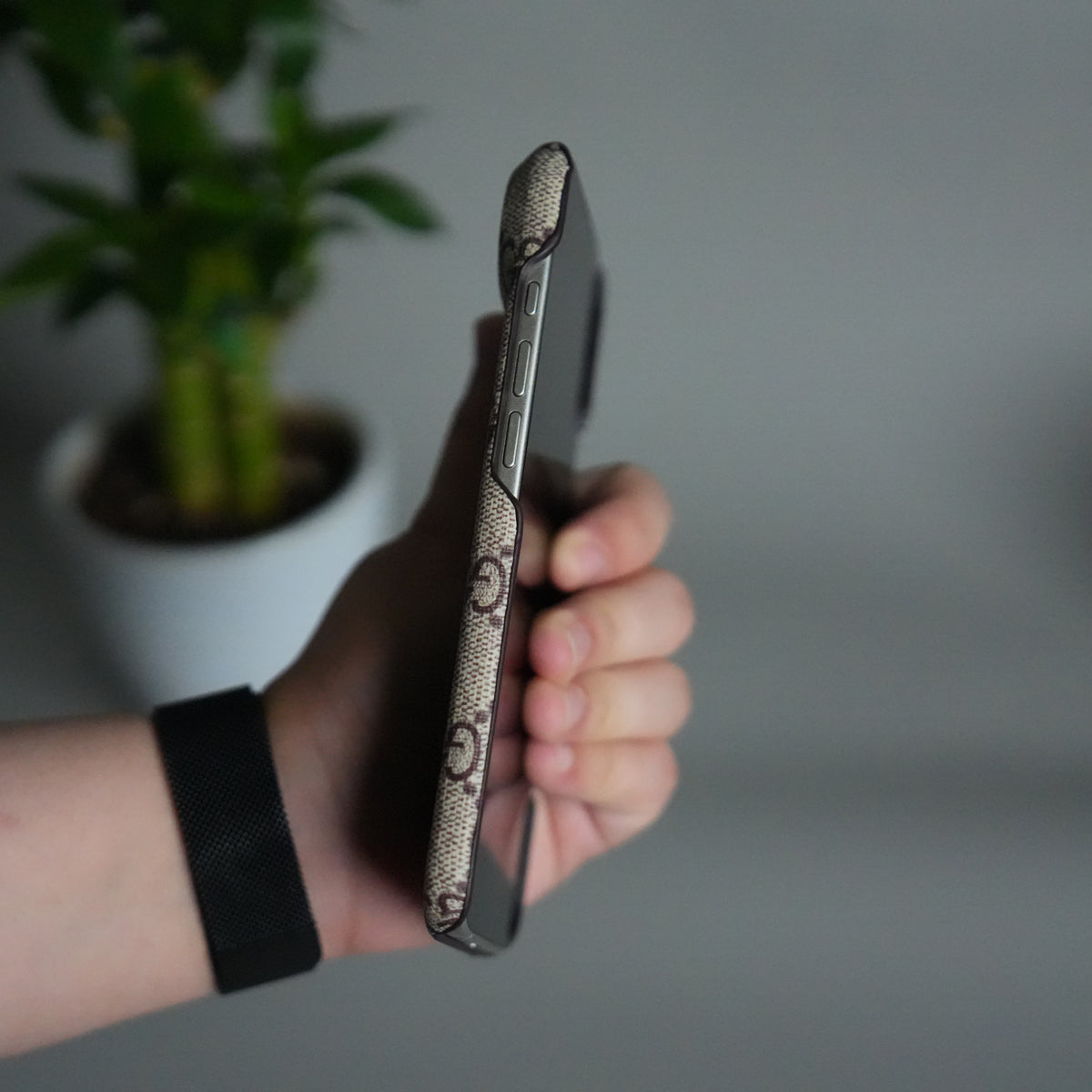 iPhone 17 Air Luxury GG Pattern PU Leather Camera Bump Case