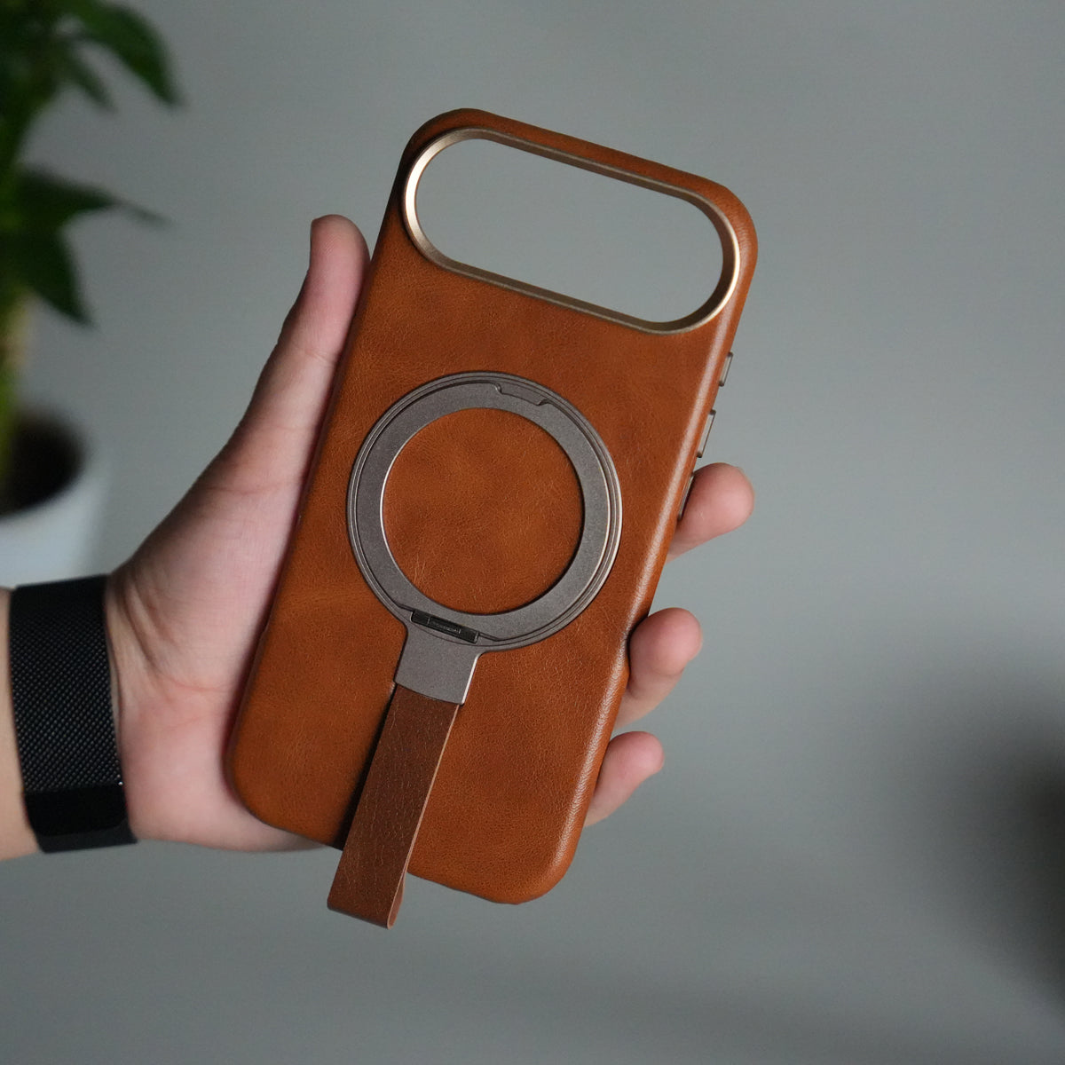 iPhone 17 Air Luxury Leather MagSafe Case | Metal Ring Stand and Grip Holder Cover