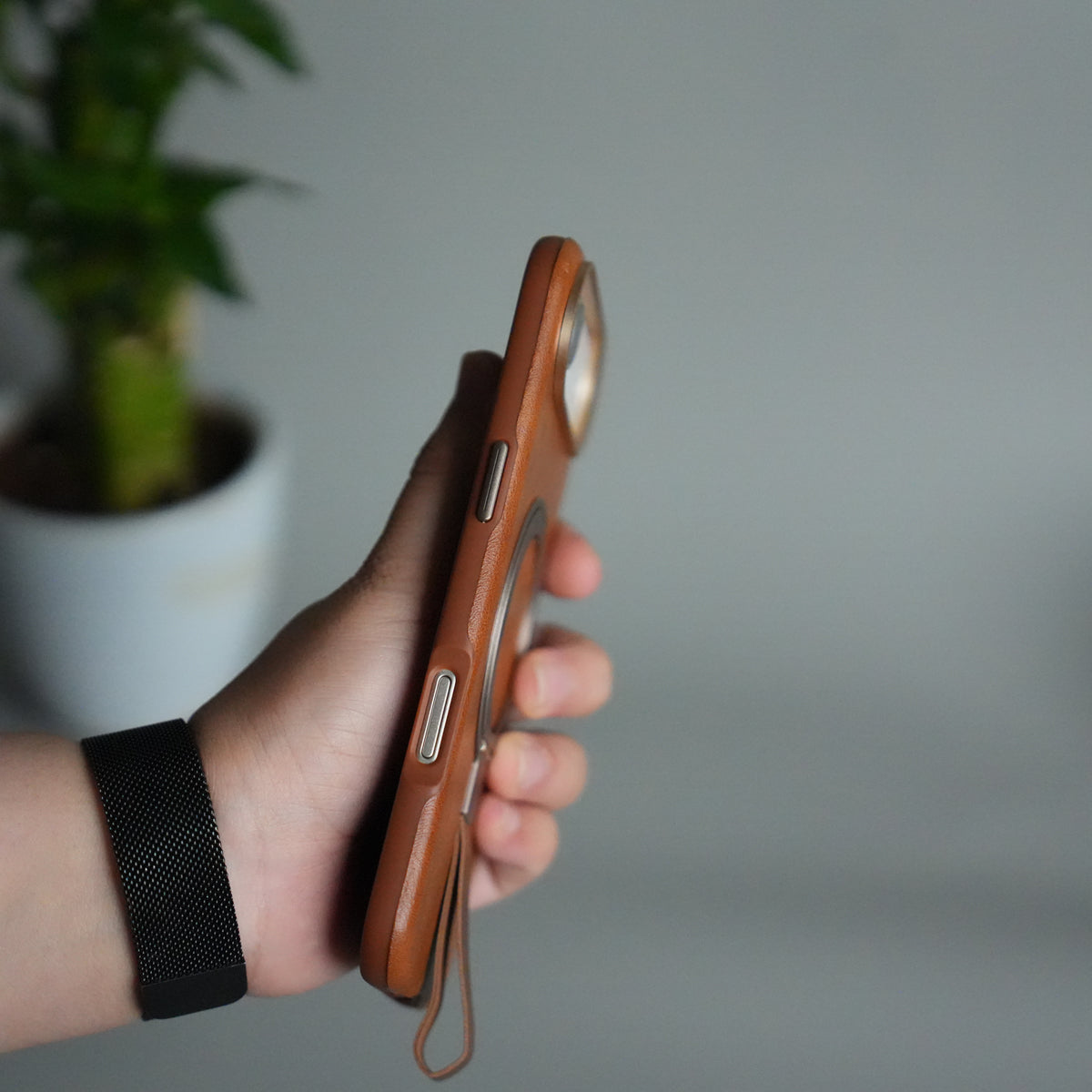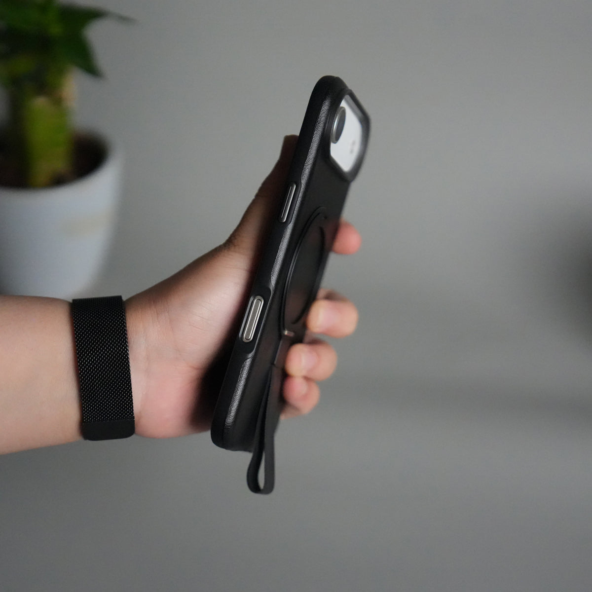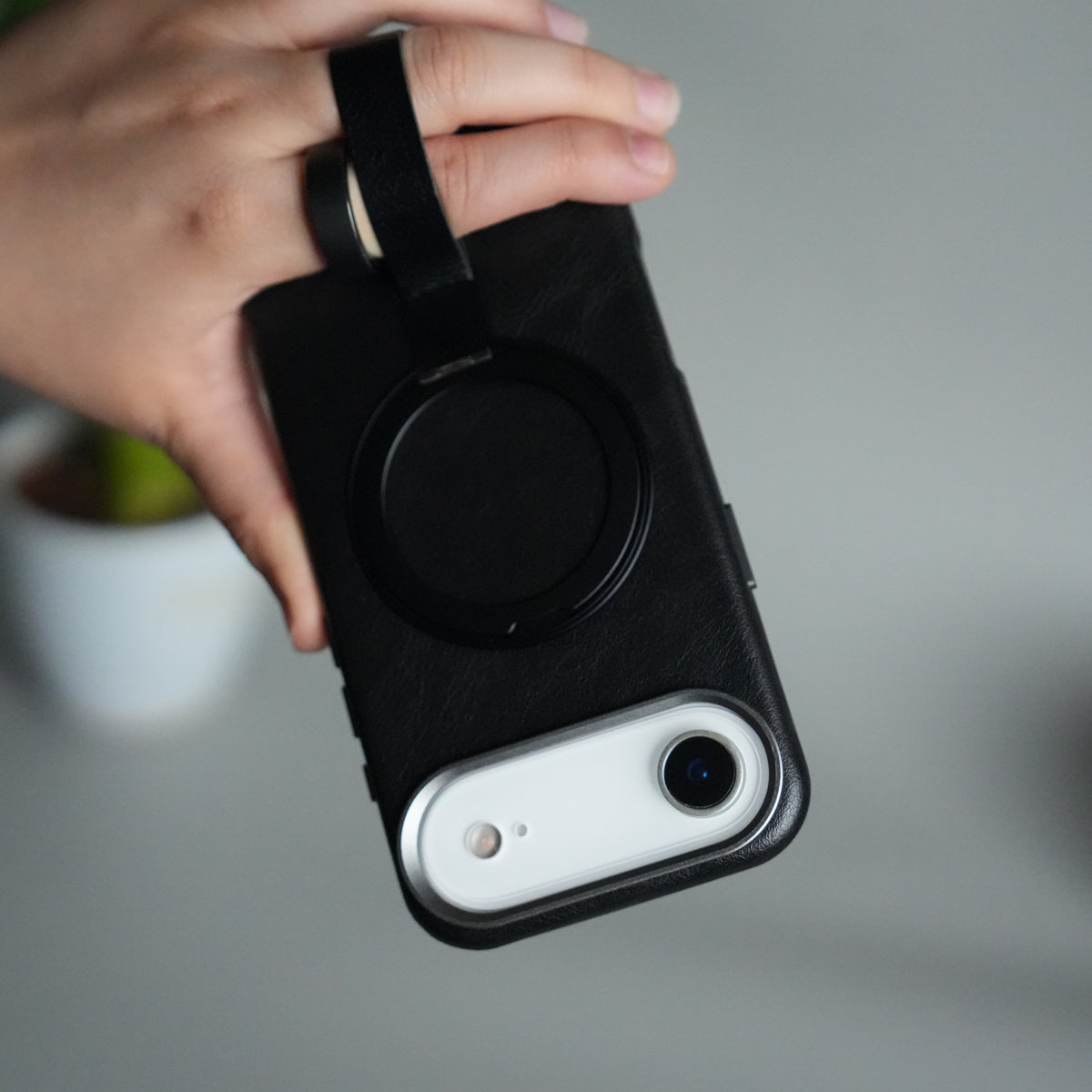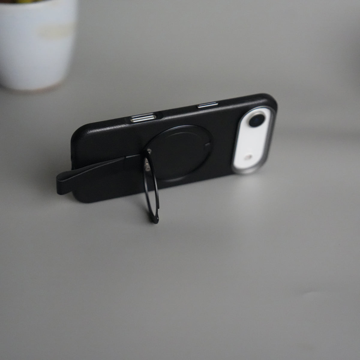 Designed with a metal magnetic ring for strong MagSafe connectivity and a built-in folding stand, this case lets you enjoy hands-free viewing anytime. The soft leather finish adds a luxurious touch while ensuring a firm grip and scratch protection.