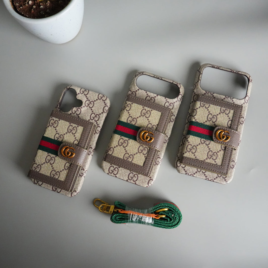 iPhone 17 Series Luxury Brand GG Wallet Case Cover