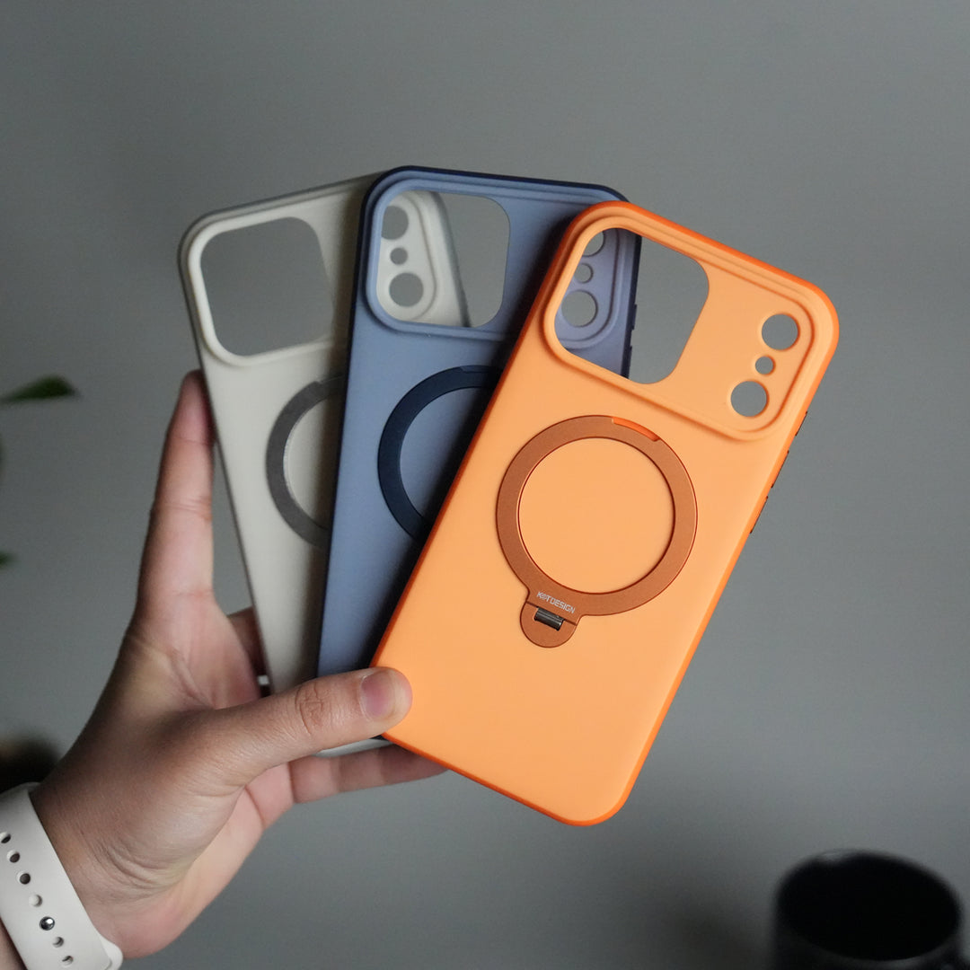 iPhone 17 Pro Max Liquid PC MagSafe Case | Soft Touch Back Cover with Metal Kickstand Ring
