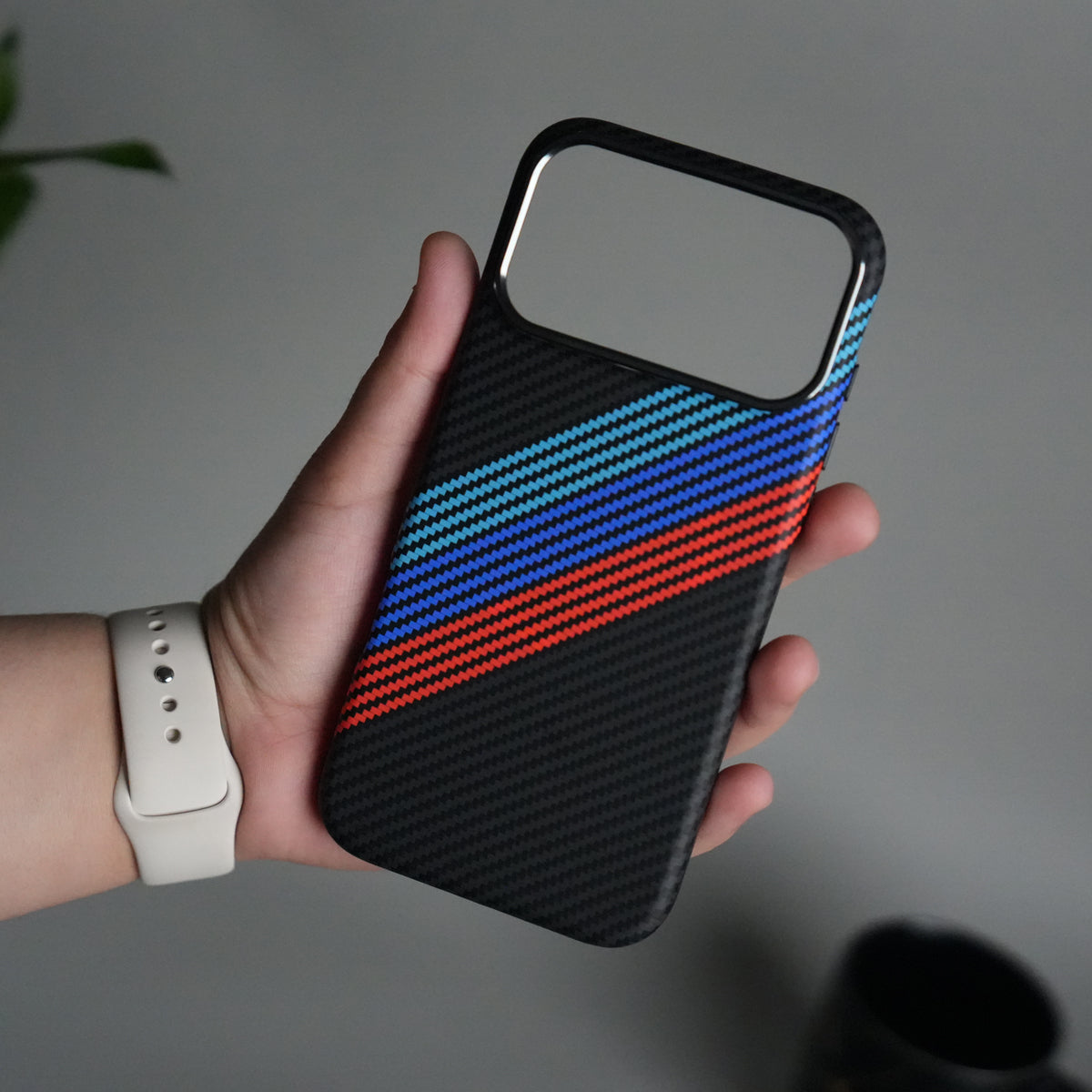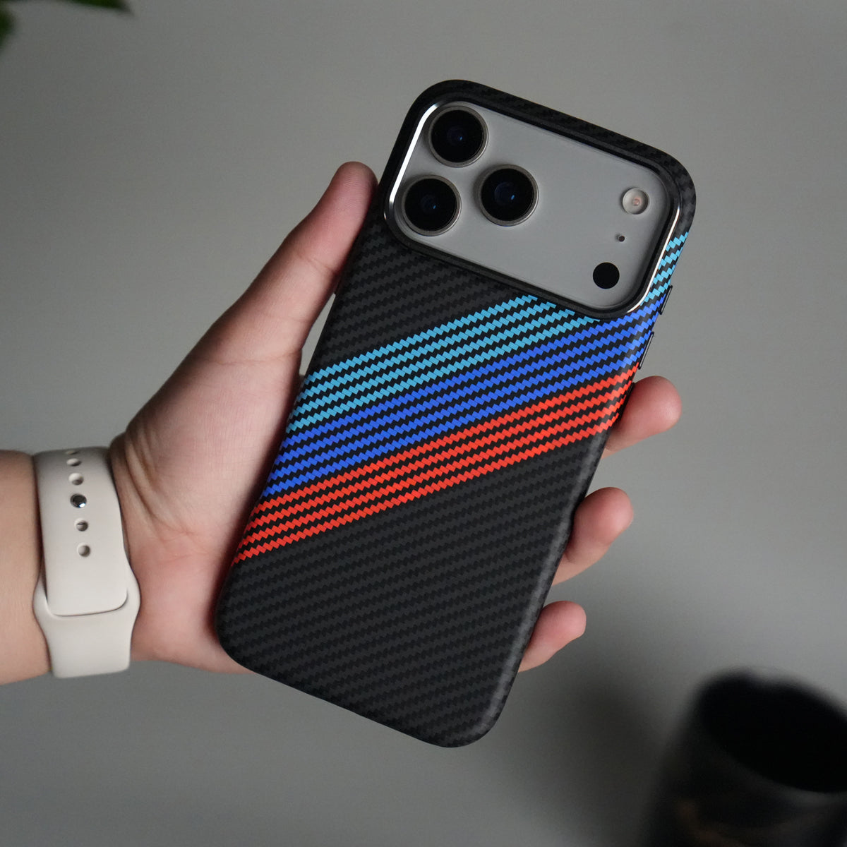 iPhone 17 Pro Max Carbon Fiber Texture Design Hard Pc MagSafe Case Cover (Cross Blue Red)