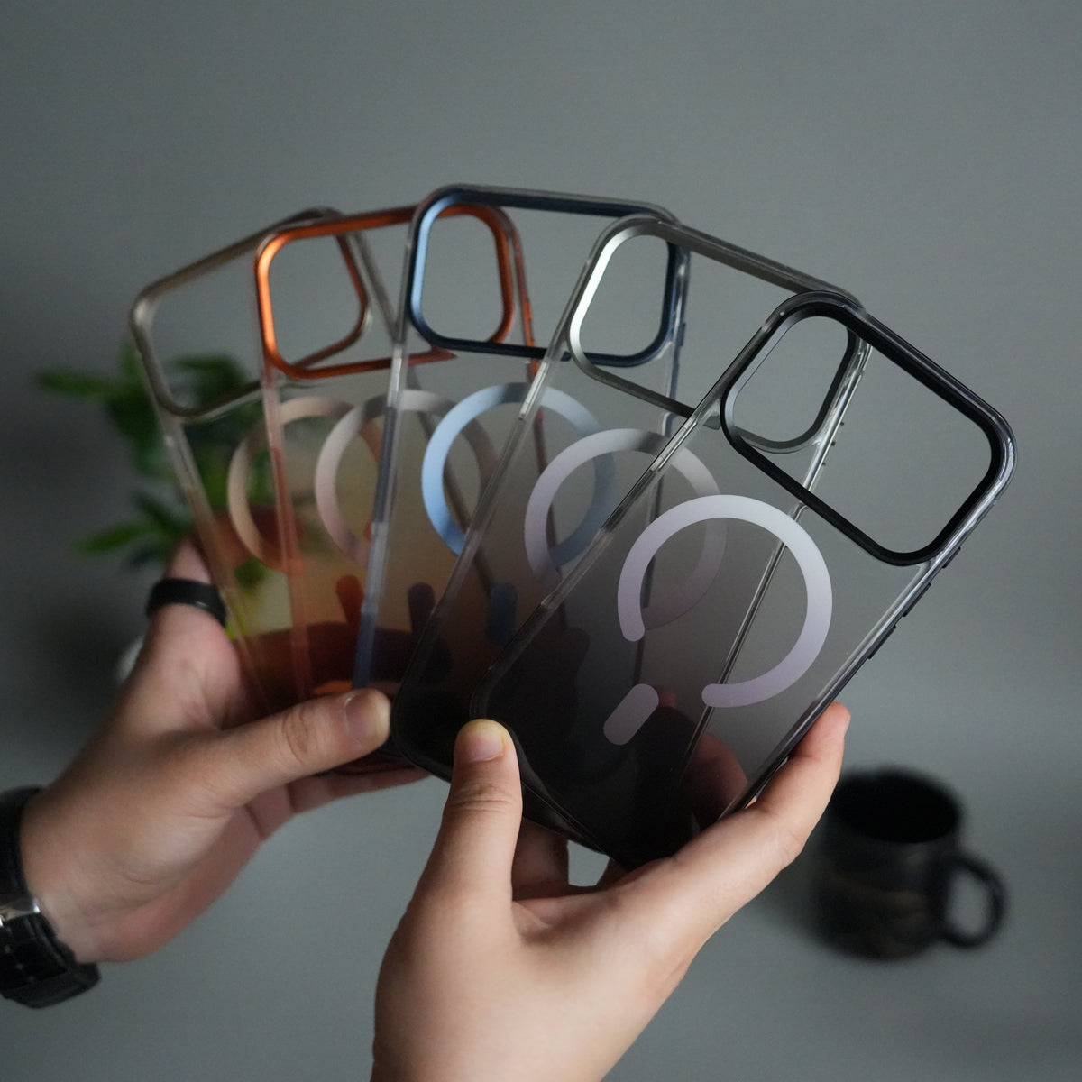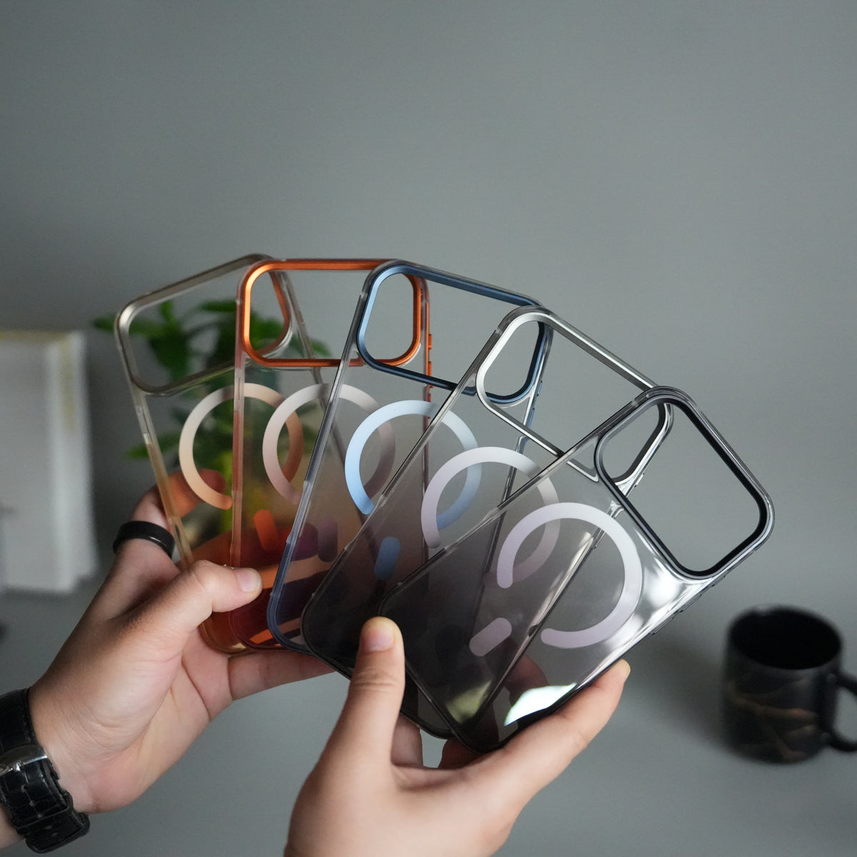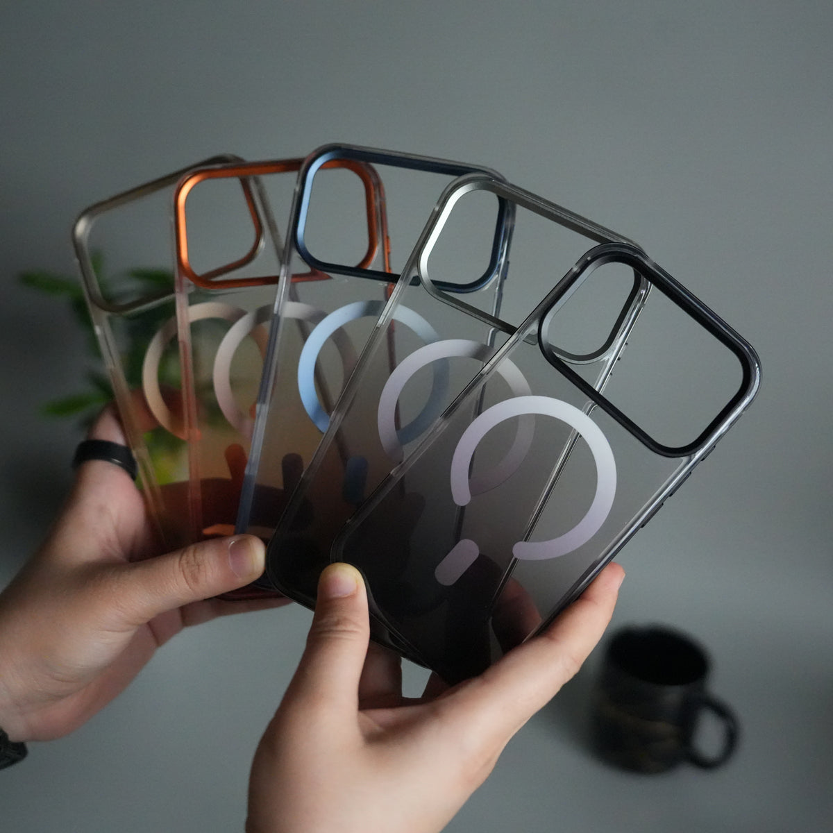 Show off the bold style of your iPhone 17 Pro Max with this Dual-Shade Aluminum Frame Magnetic Case. Featuring a transparent anti-yellow back, this case highlights your phone’s design while adding a unique two-tone metallic edge for a premium, eye-catching look. The built-in MagSafe ring ensures strong magnetic attachment and fast wireless charging, while the metal camera guard keeps your lenses safe and stylish.