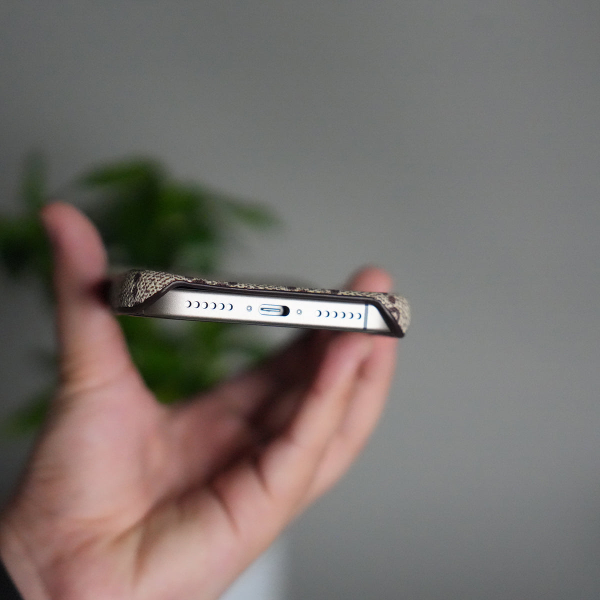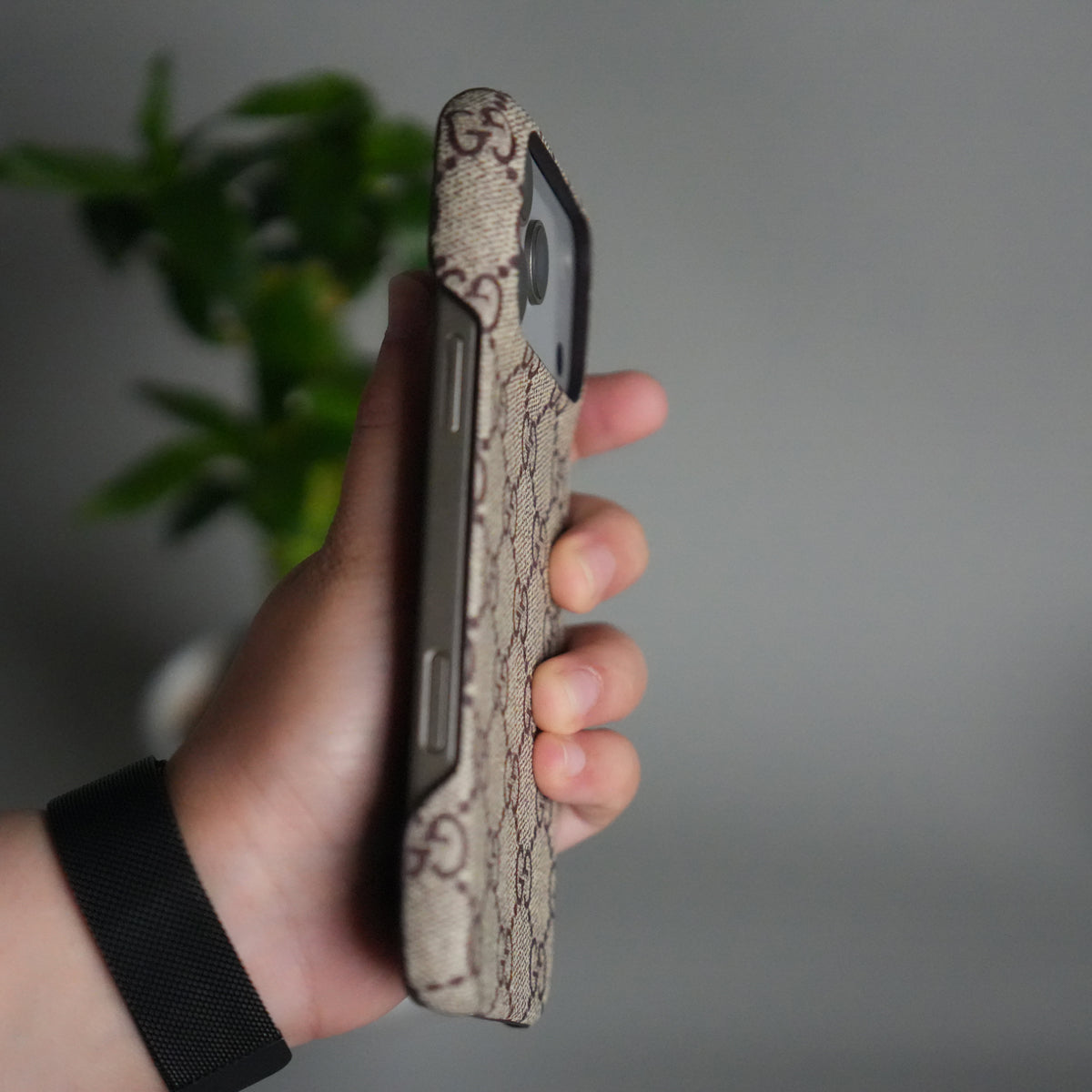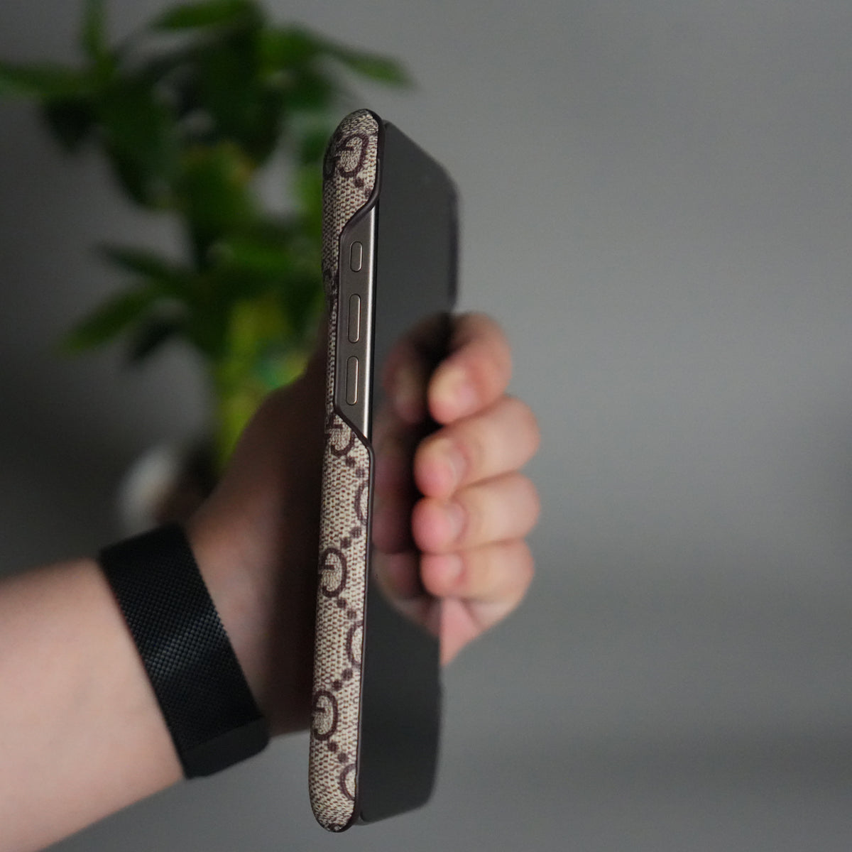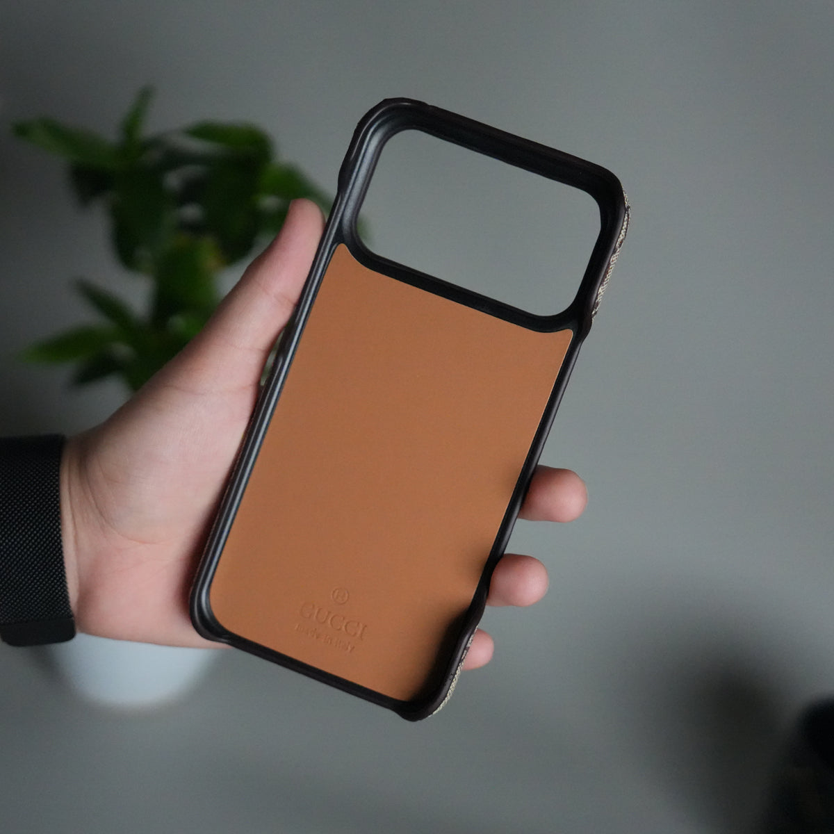 iPhone 17 Pro Max Luxury GG Pattern PU Leather Case Cover (Beige)