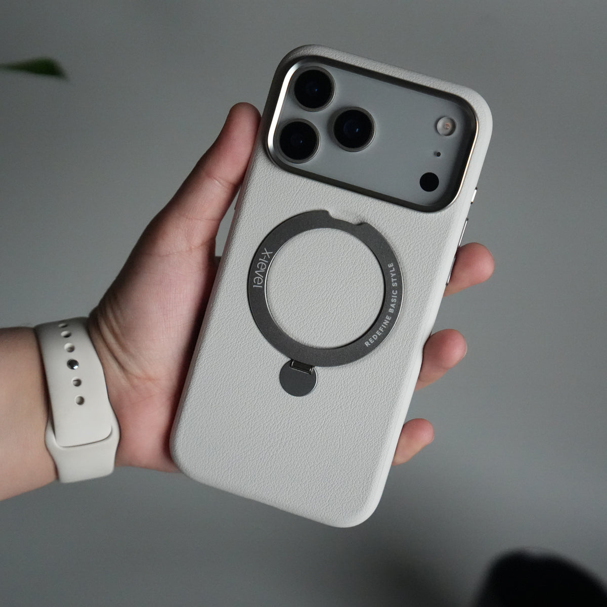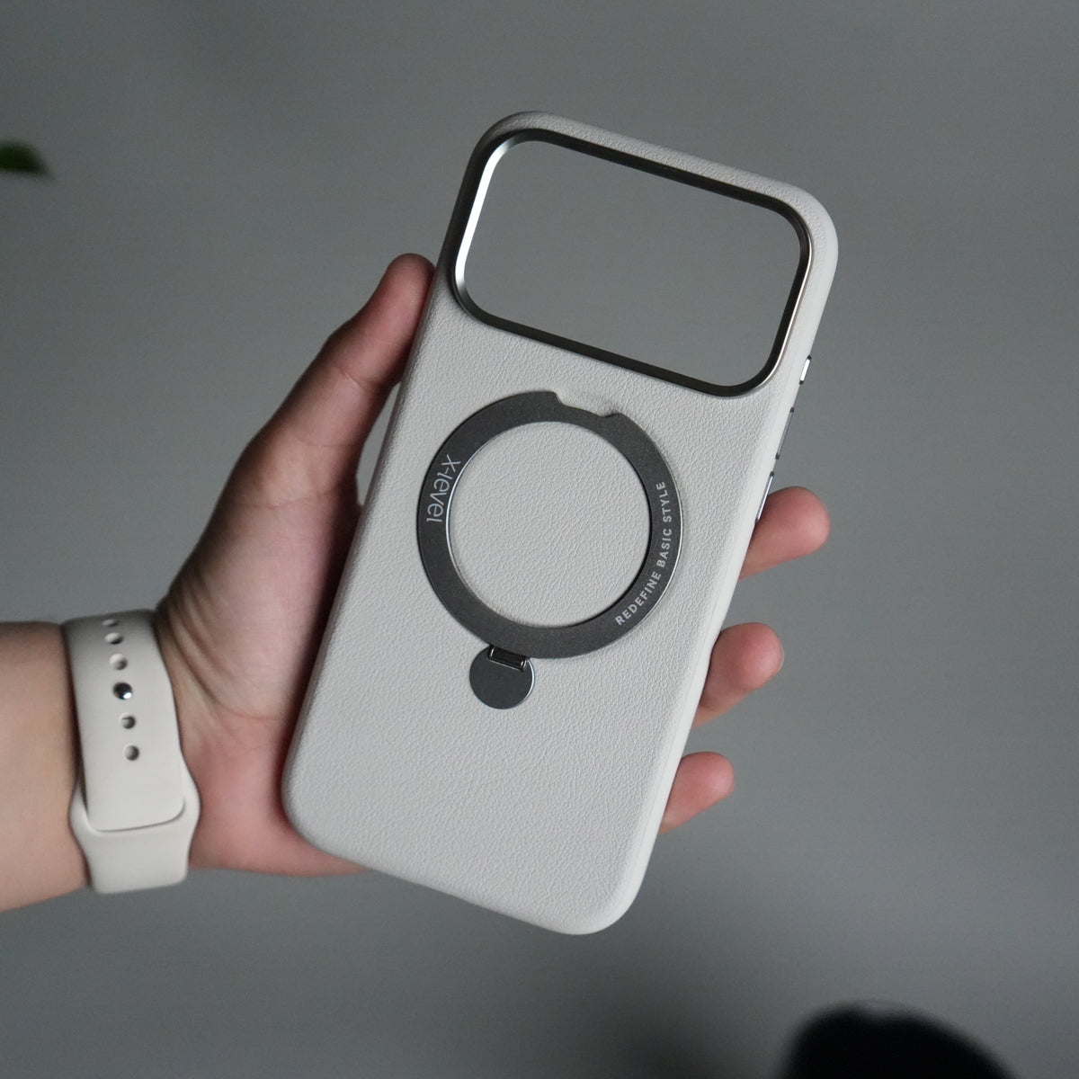 Designed for users who prefer a clean, stylish look without MagSafe, this case features a durable metal ring kickstand that allows stable hands-free viewing in both portrait and landscape mode.