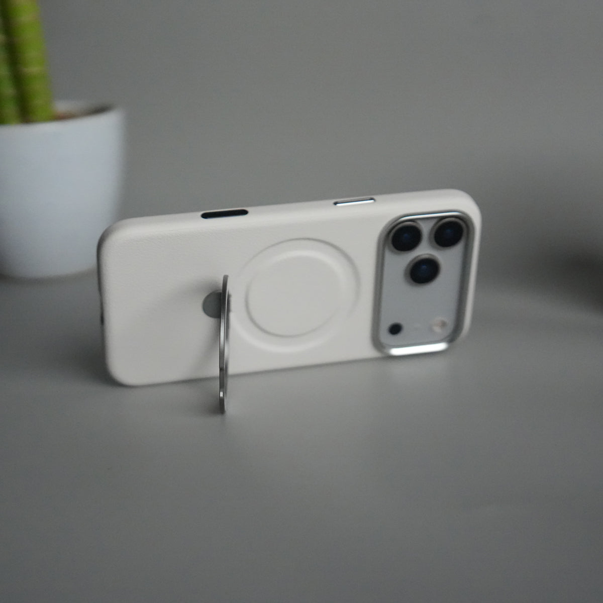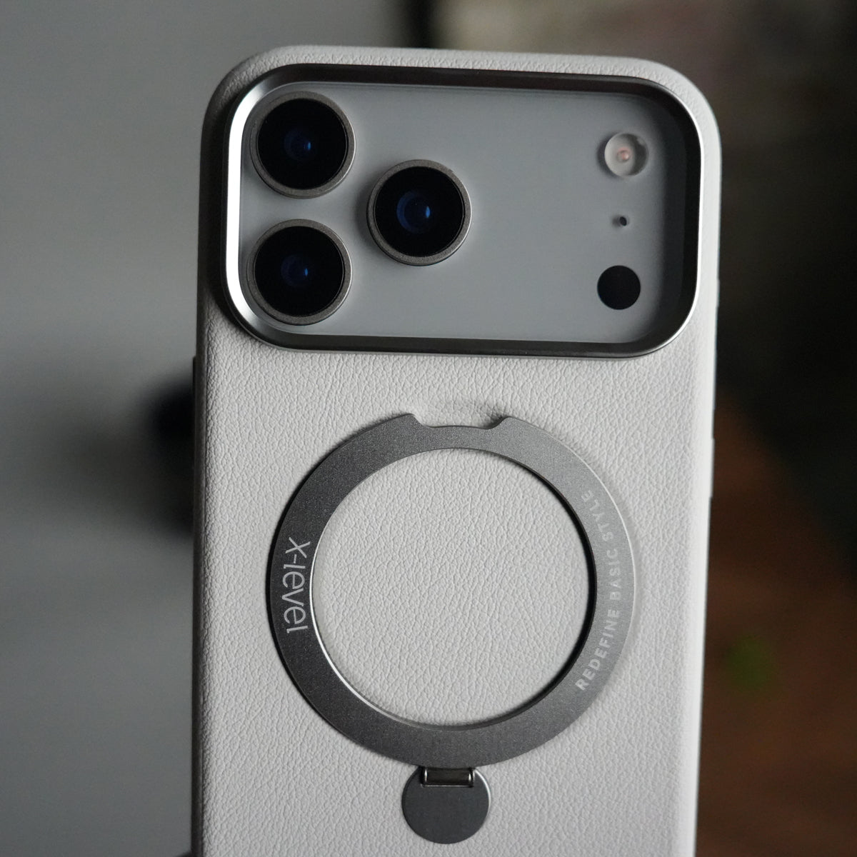 Give your iPhone 17 Pro Max a touch of elegance and practicality with this Premium Leather Kickstand Case.