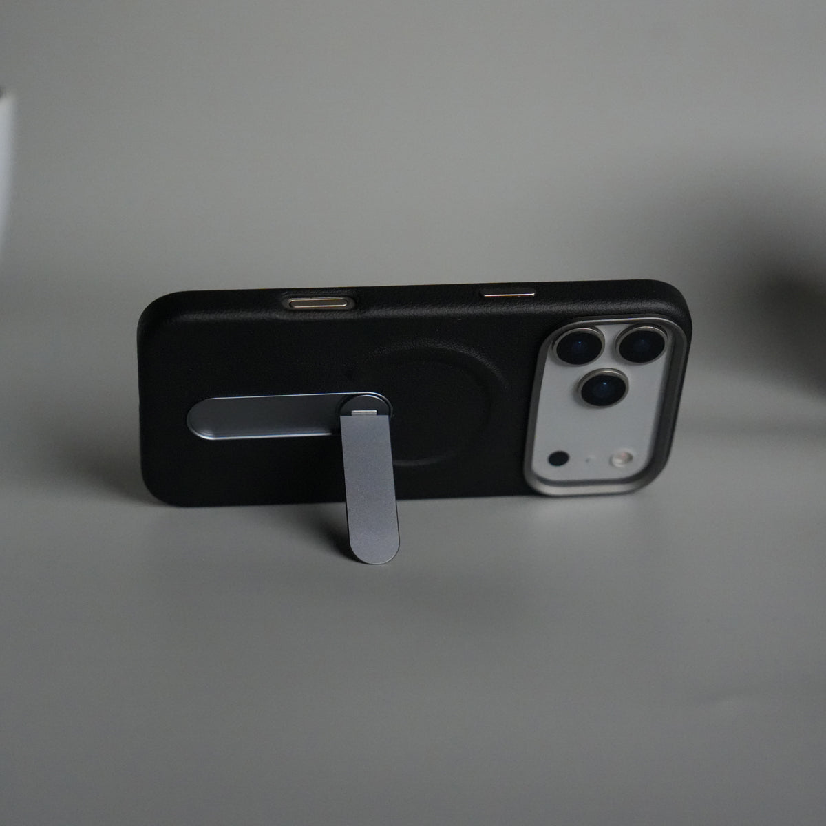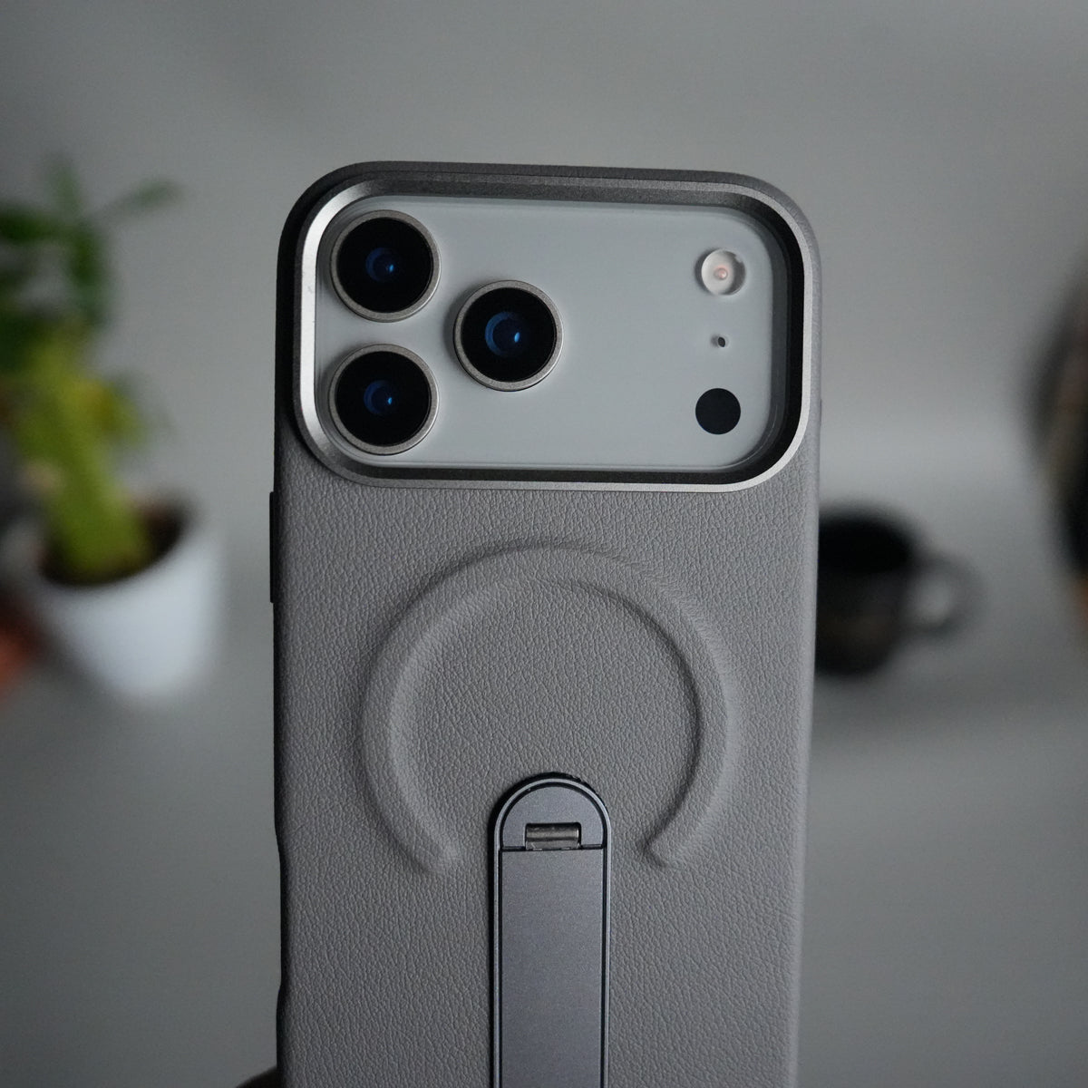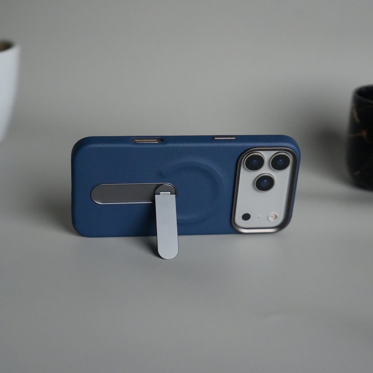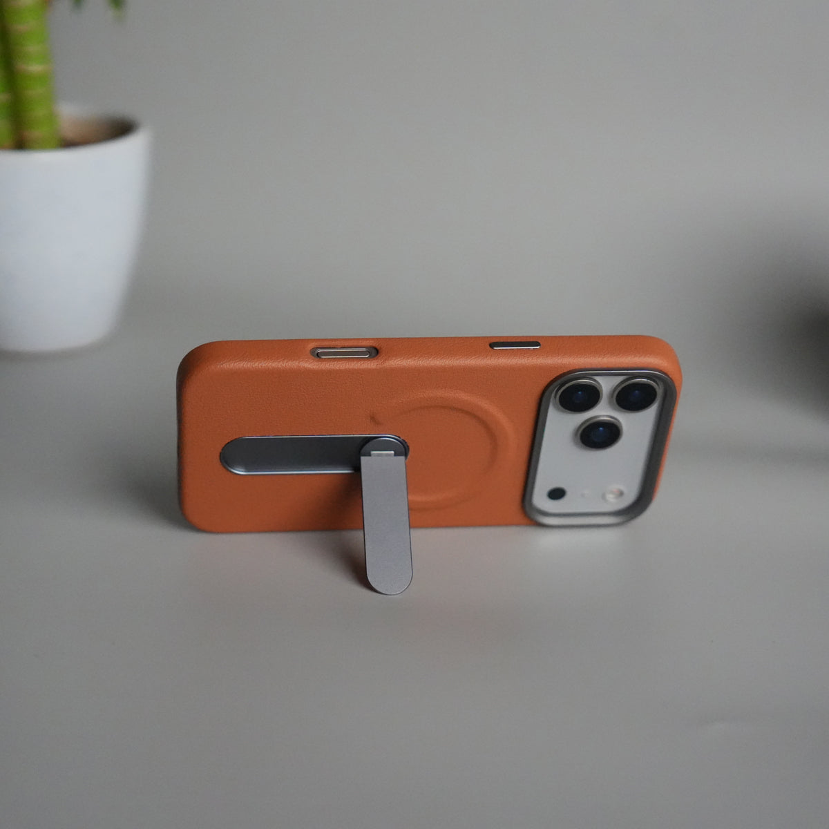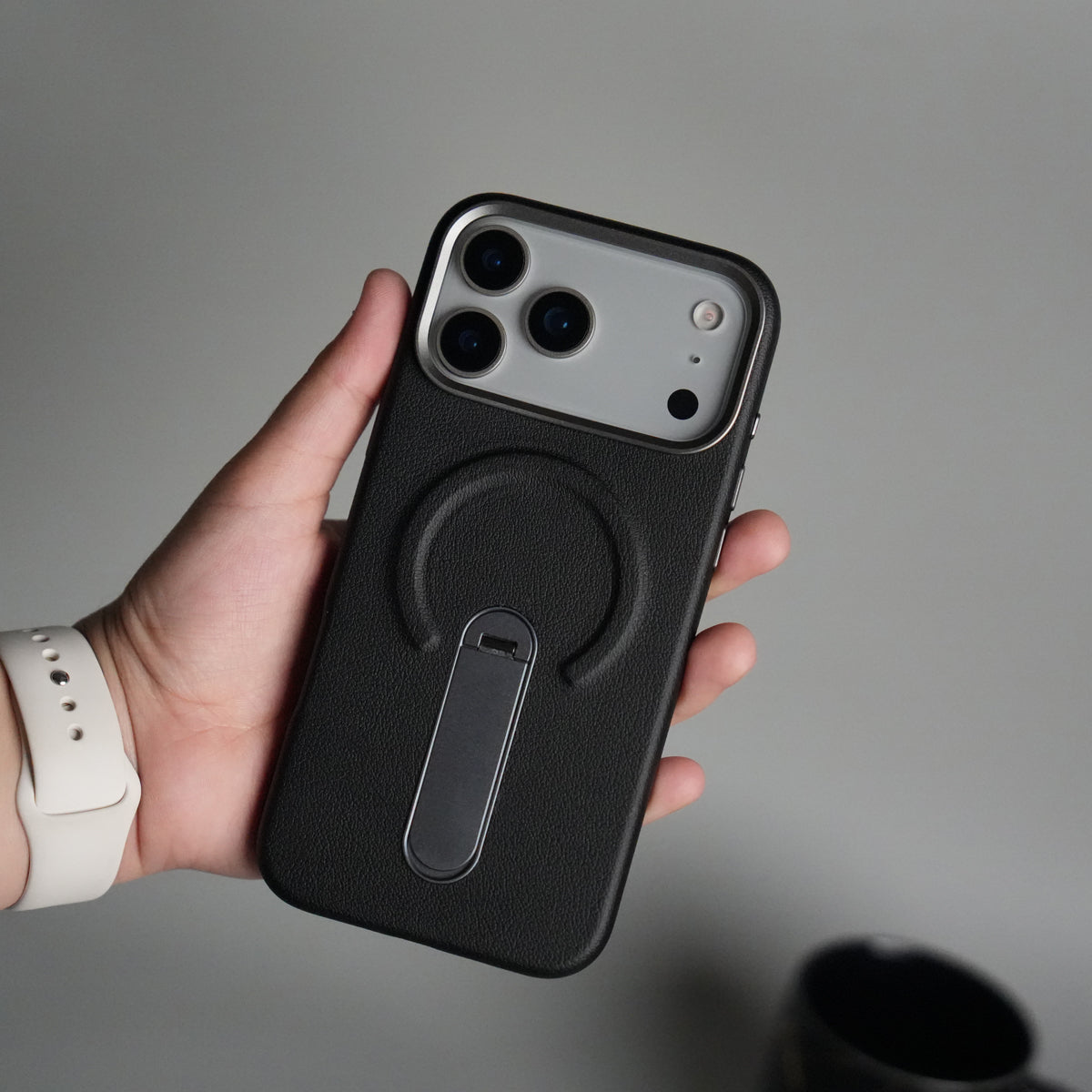 iPhone 17 Pro max Premium Leather-Texture Back Case with Metal Kickstand