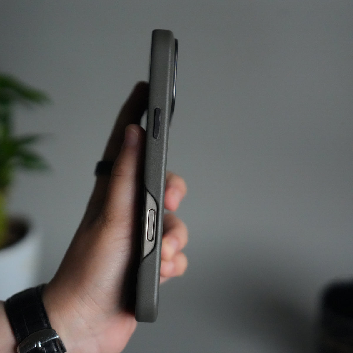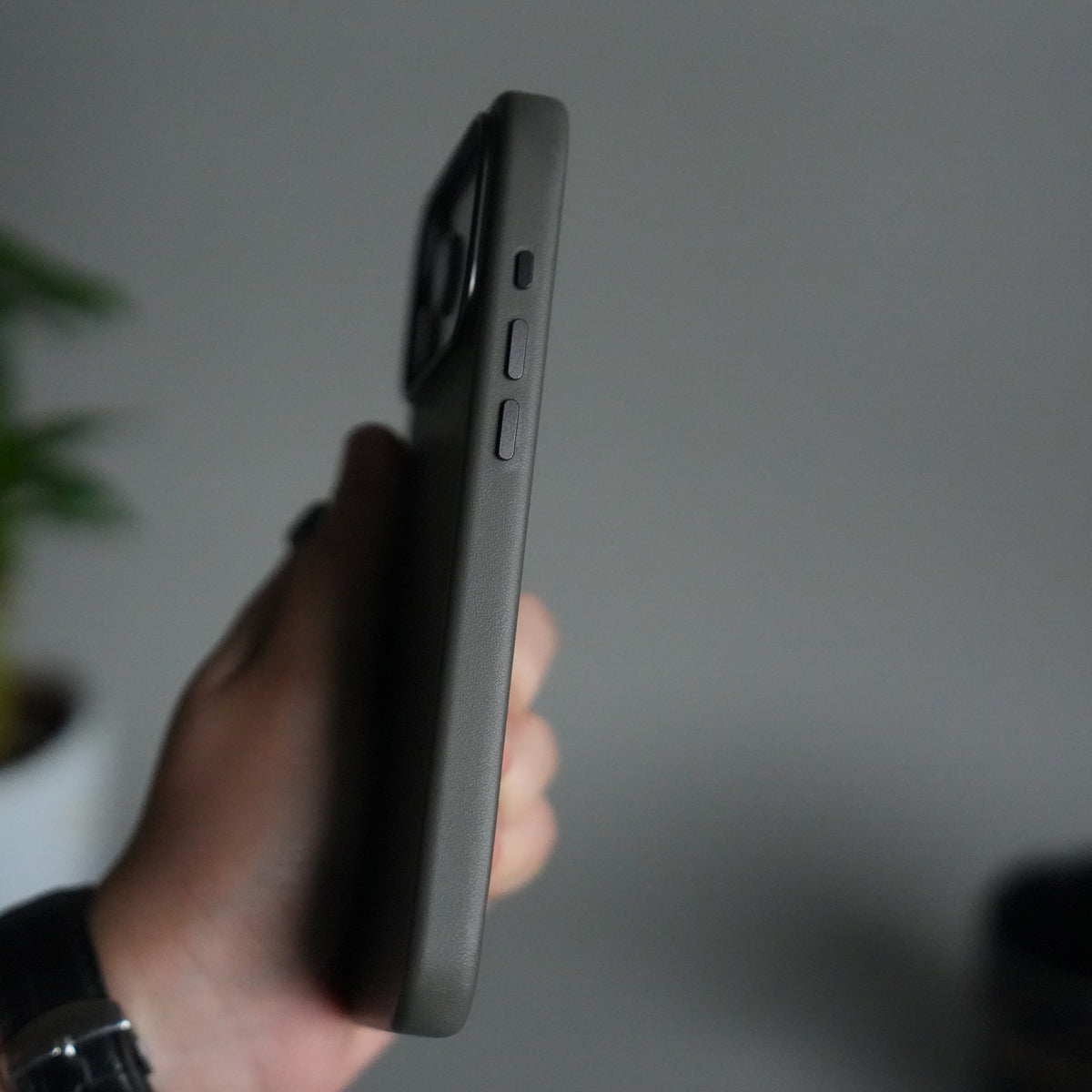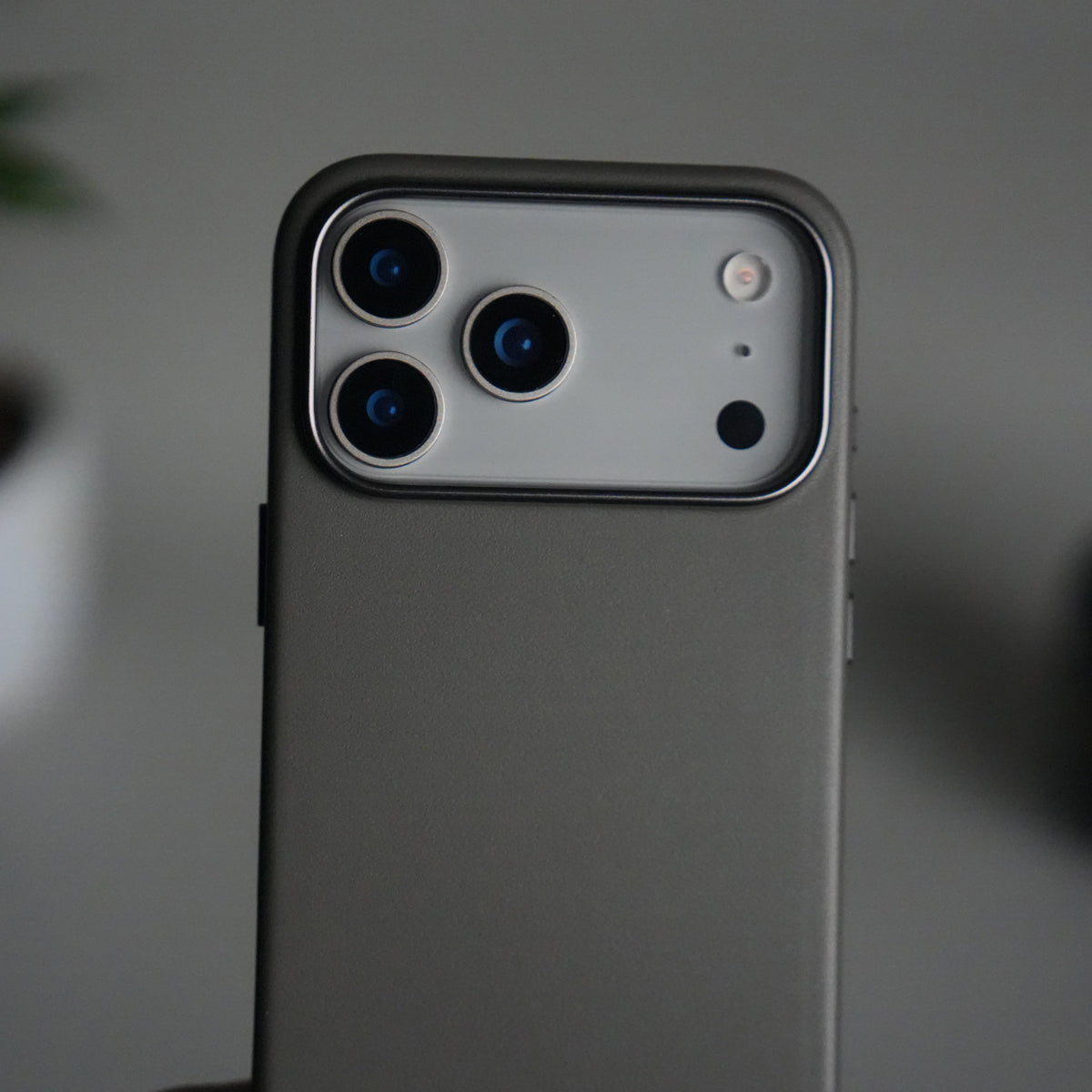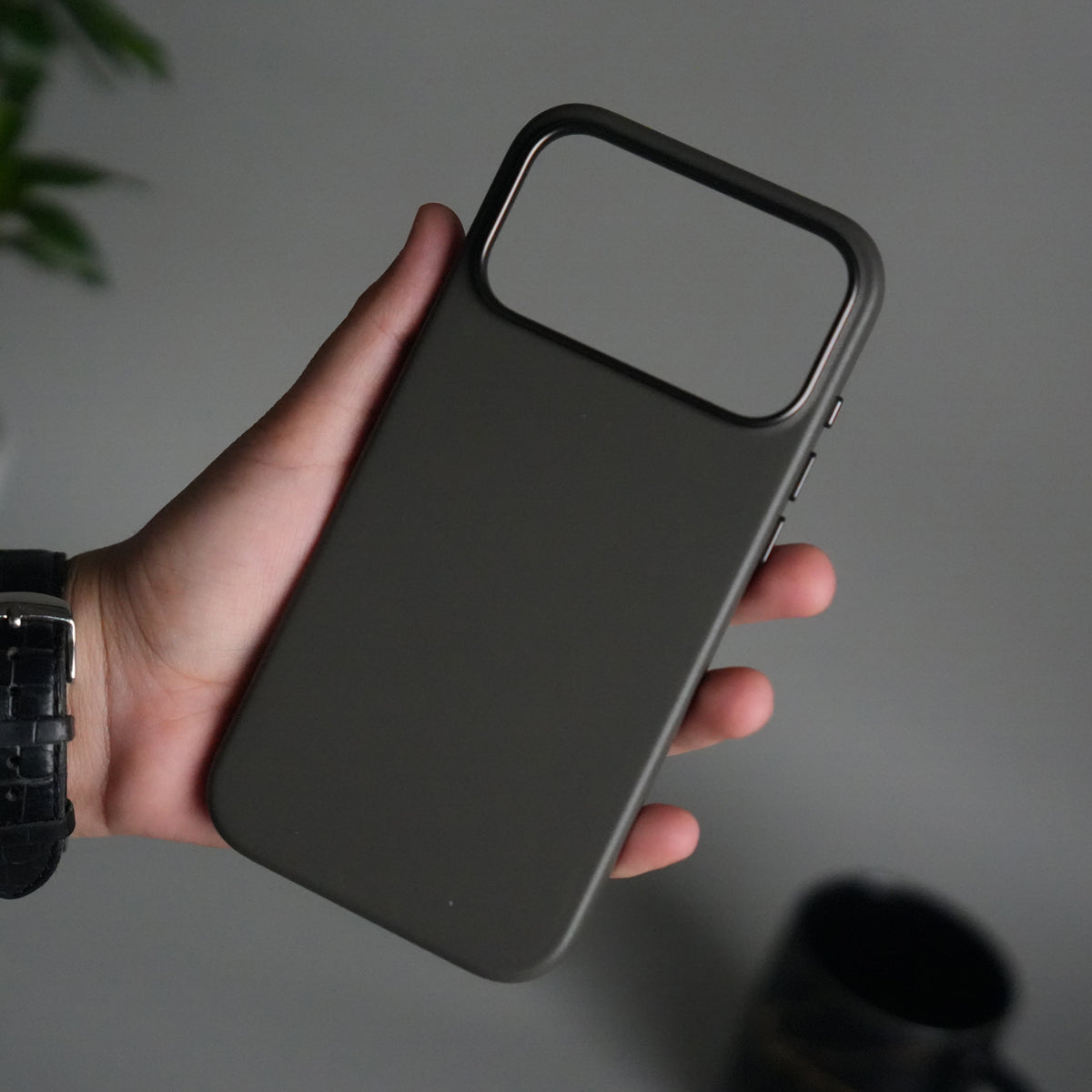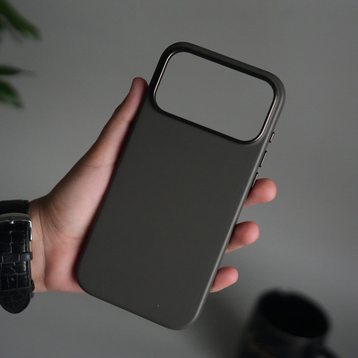 iPhone 17 Pro Max Premium PU Leather MagSafe Case | Metal Camera Frame Luxury Back Cover | Dark Gray