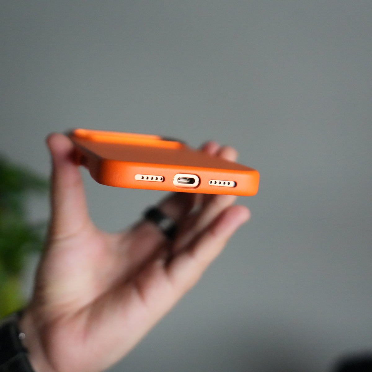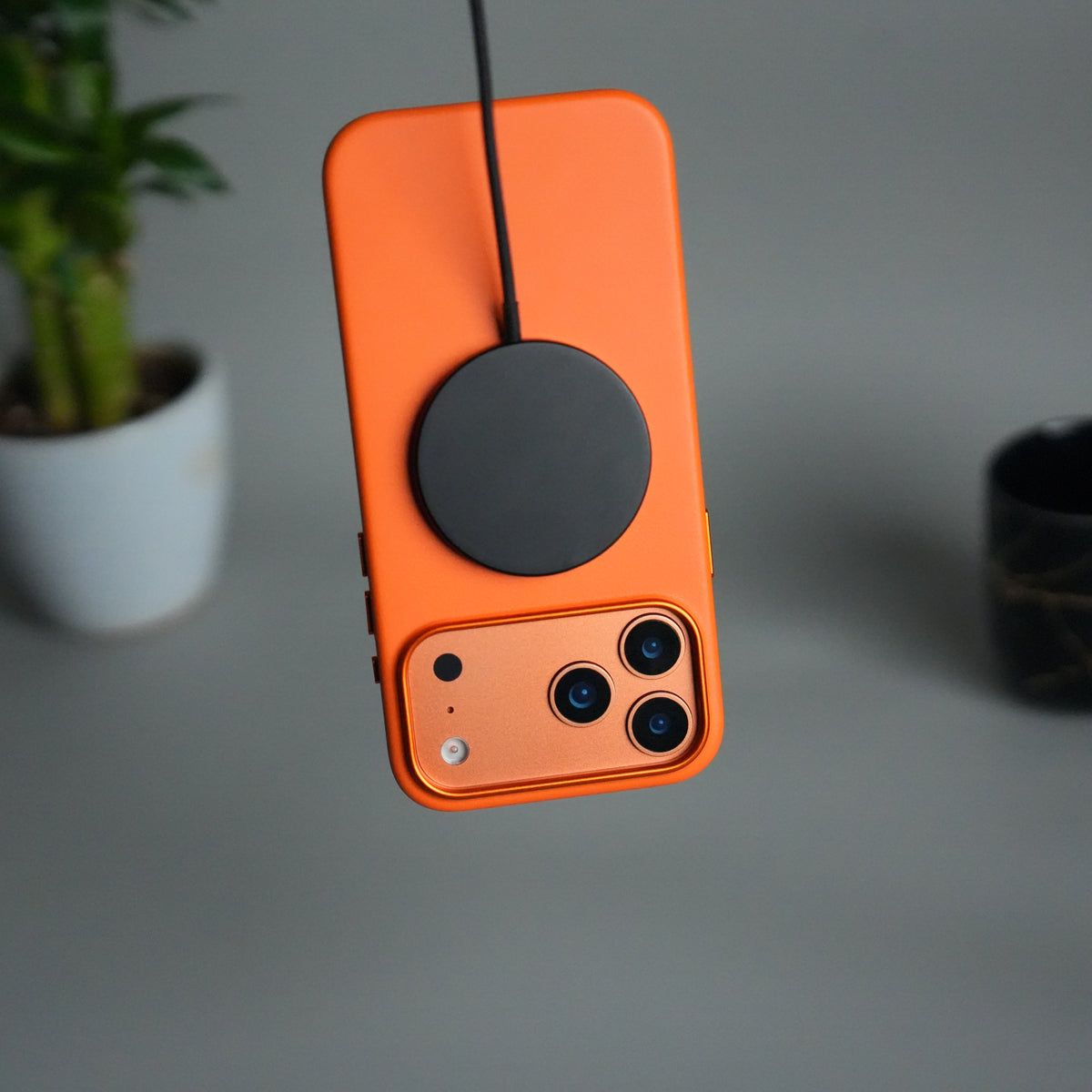 iPhone 17 Pro Max Premium PU Leather MagSafe Case | Metal Camera Frame Luxury Back Cover | Orange