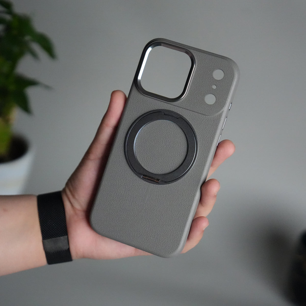 ✅ Built-in Rotating Metal Stand Ring