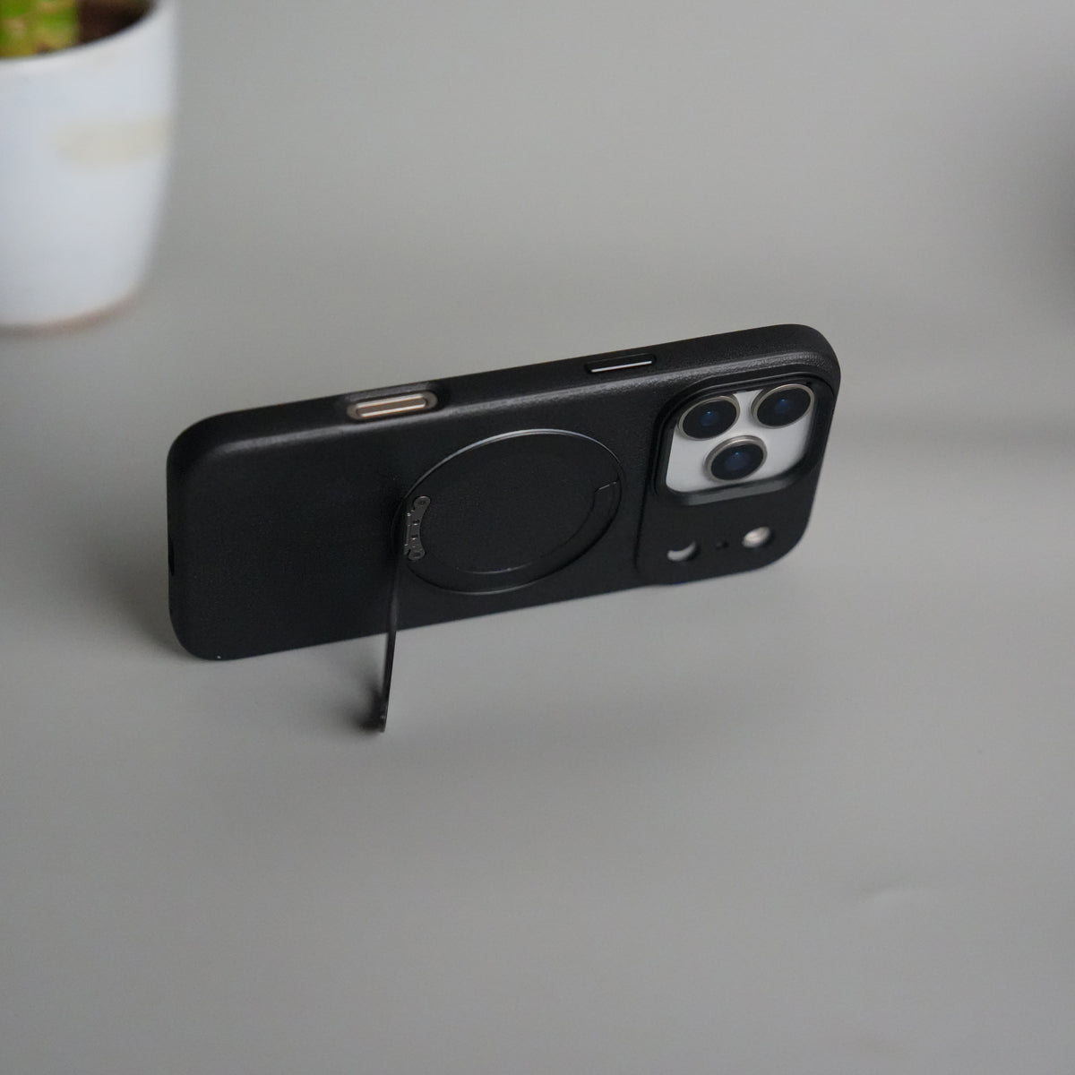 Built with durable TPU edges and a soft-touch PU back, it offers superior shock absorption, a comfortable grip, and a stylish minimalist look perfect alignment every time.