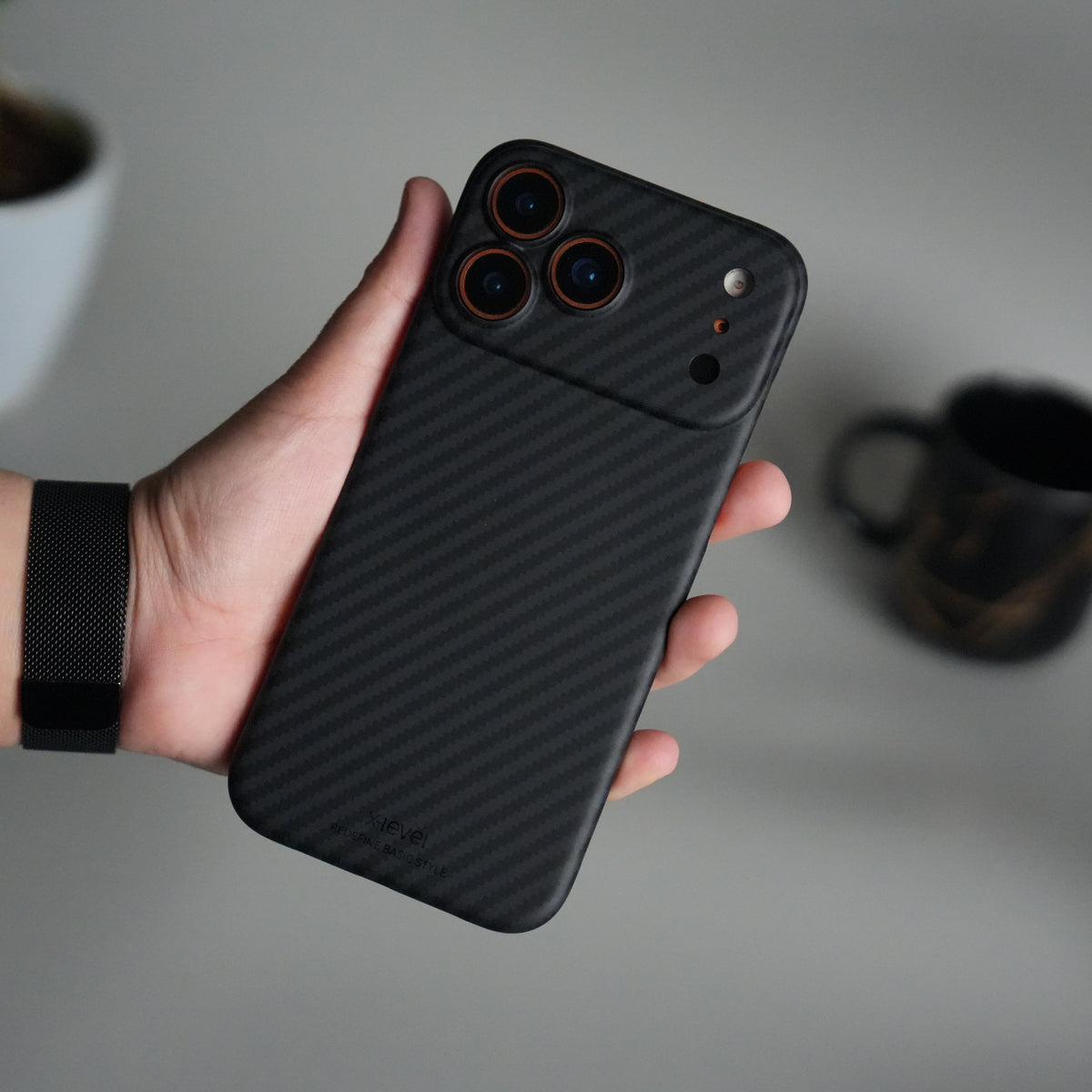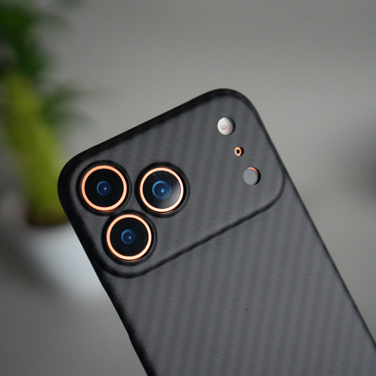 Experience sleek protection with this ultra-thin carbon fiber design case for the iPhone 17 Pro. Crafted with a premium textured carbon fiber finish, it offers a stylish, modern look while keeping your phone feather-light and pocket-friendly. The integrated Magnetic Charging Ring ensures seamless MagSafe and wireless charging compatibility without removing the cover. Perfect for those who prefer a minimalist yet protective case.