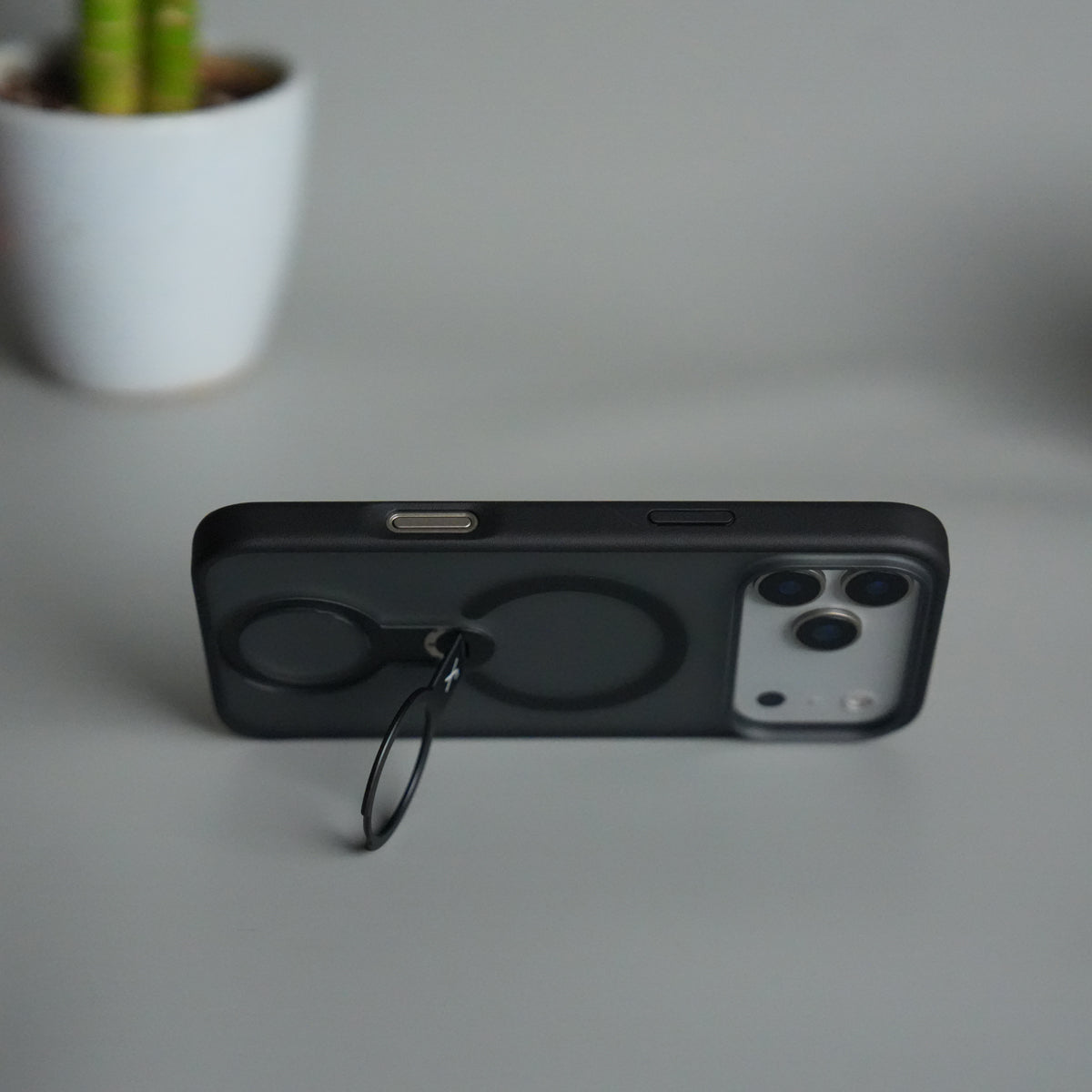 Upgrade your iPhone 17 Pro protection with this frosted magnetic stand case, combining style, grip, and function.