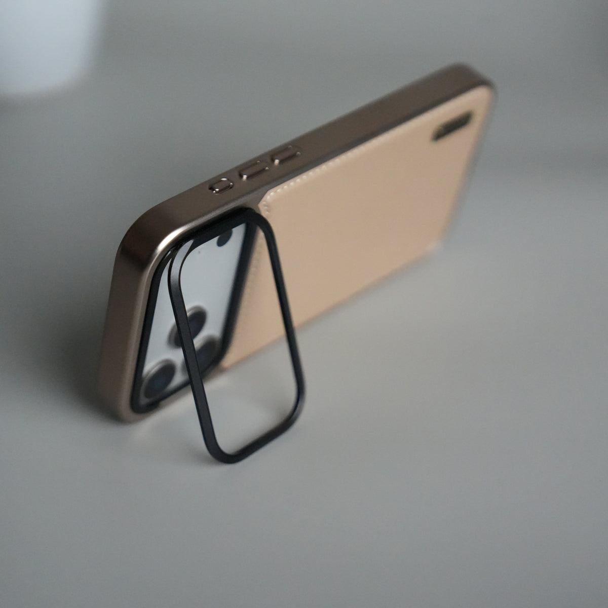 iPhone 17 Pro Premium Leather Back Case with Metal Kickstand And camera Bump Cover