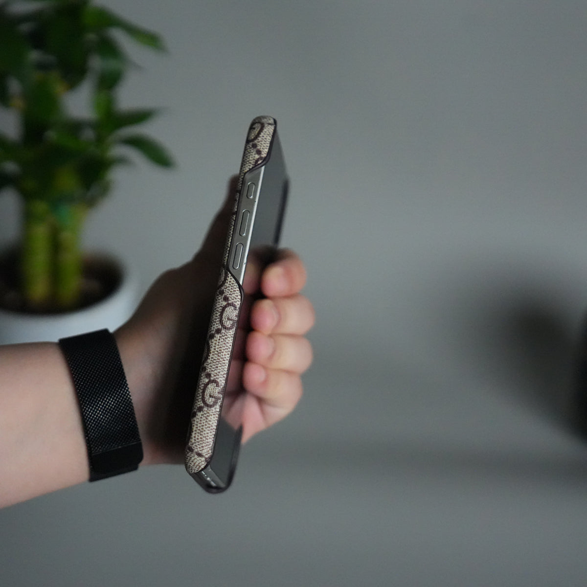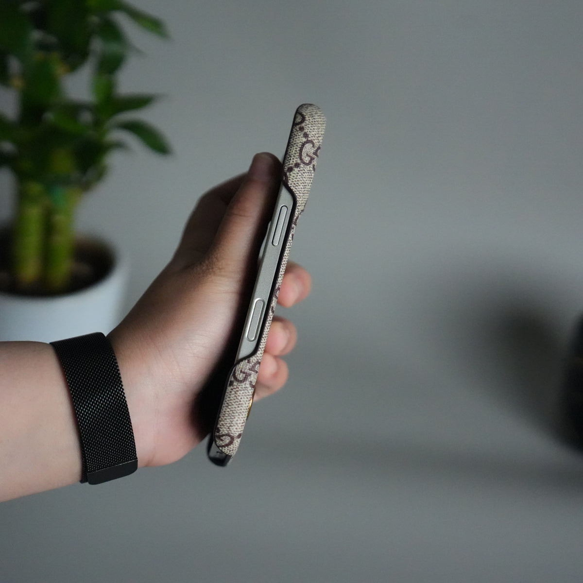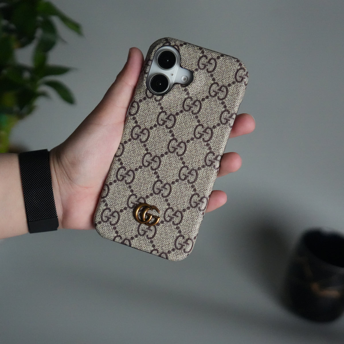 iPhone 17 Luxury GG Pattern PU Leather Camera Bump Case