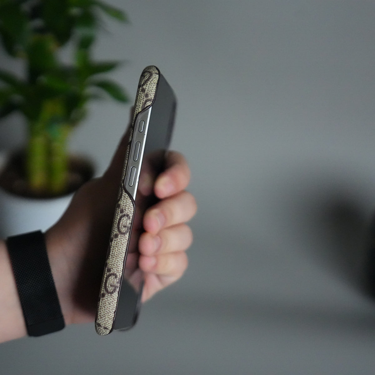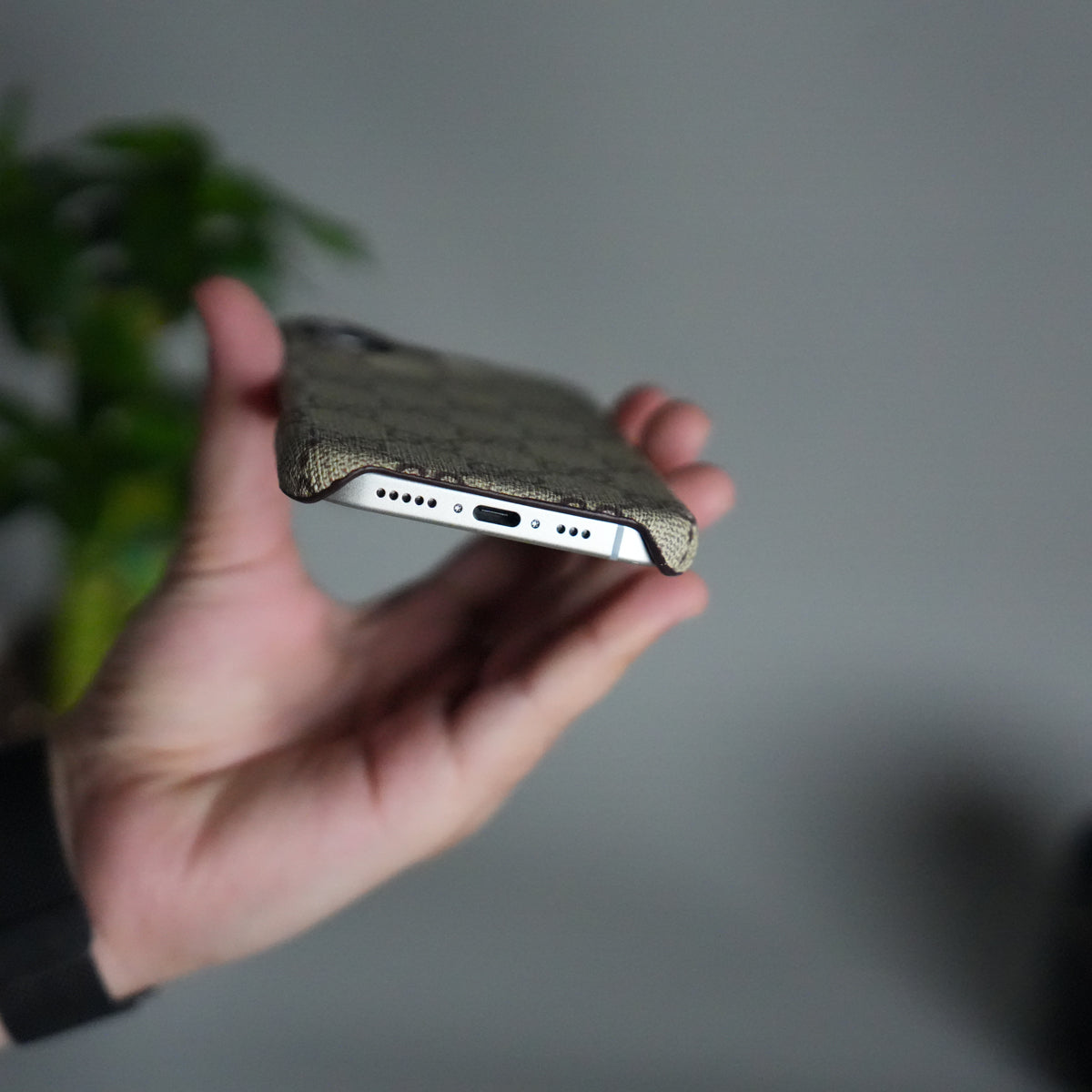 iPhone 17 Luxury GG Pattern PU Leather Case Cover (Beige)
