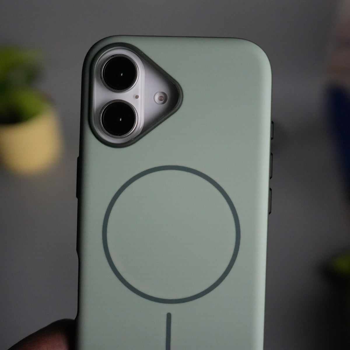 This case features a smooth matte silicone-style finish that feels soft in hand while providing a secure, non-slip grip. The built-in MagSafe ring ensures strong magnetic attachment for wireless charging and accessories, while the color-matched camera frame adds a premium accent and protects your camera lenses from scratches.