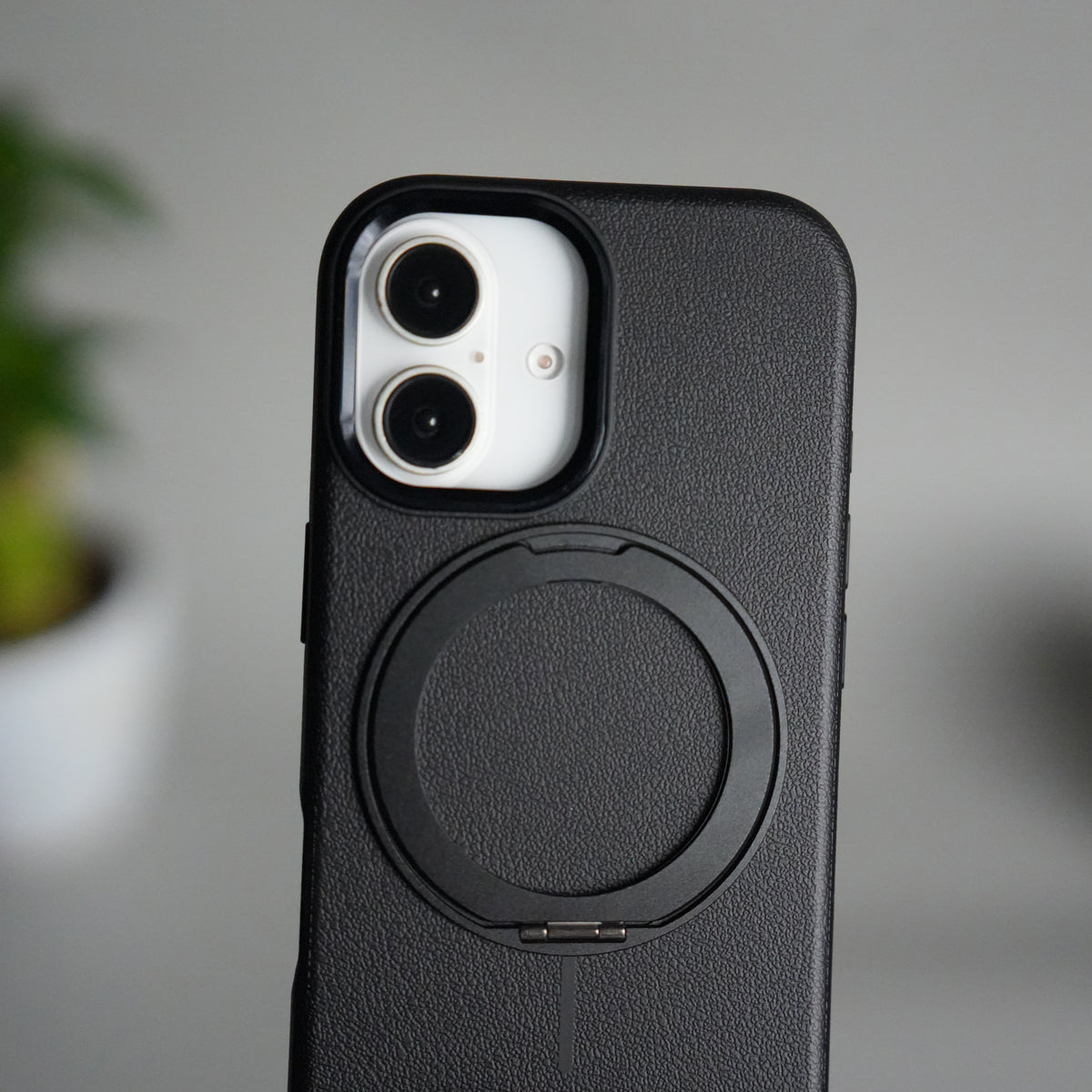 iPhone 17 Texture Case | Rotating Metal Stand Ring Cover