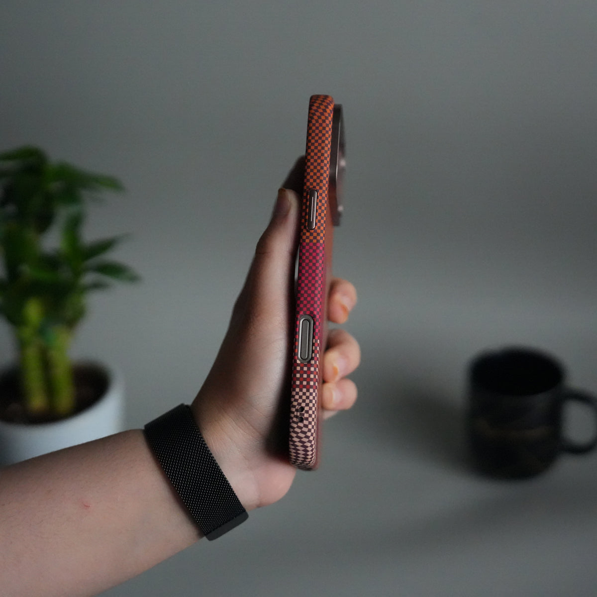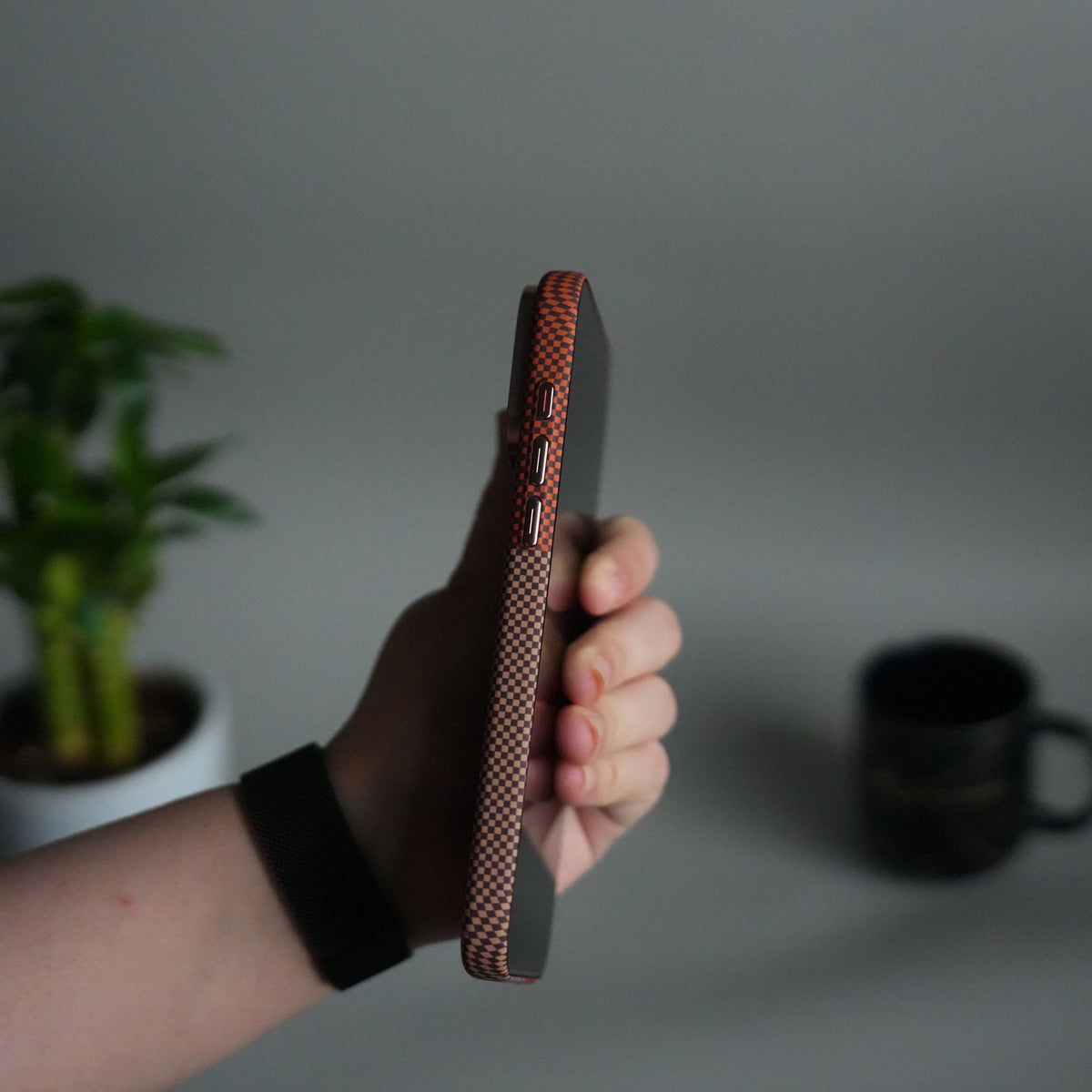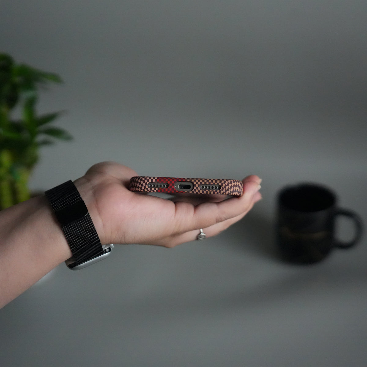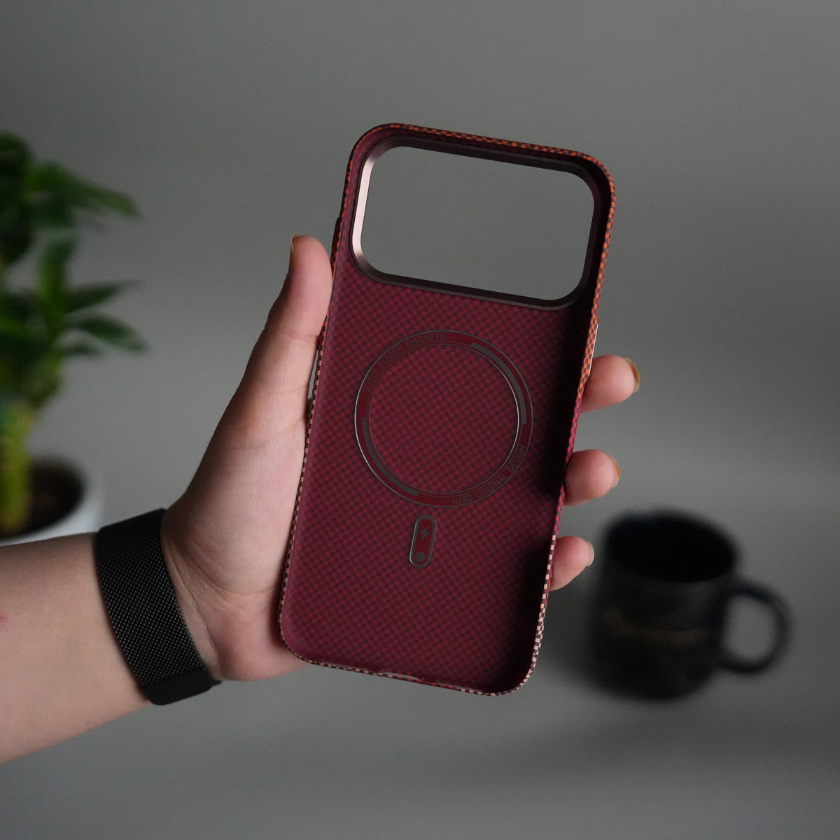 iPhone 17 Pro Carbon Fiber Texture Design Hard Pc MagSafe Case Cover (Red Beige)