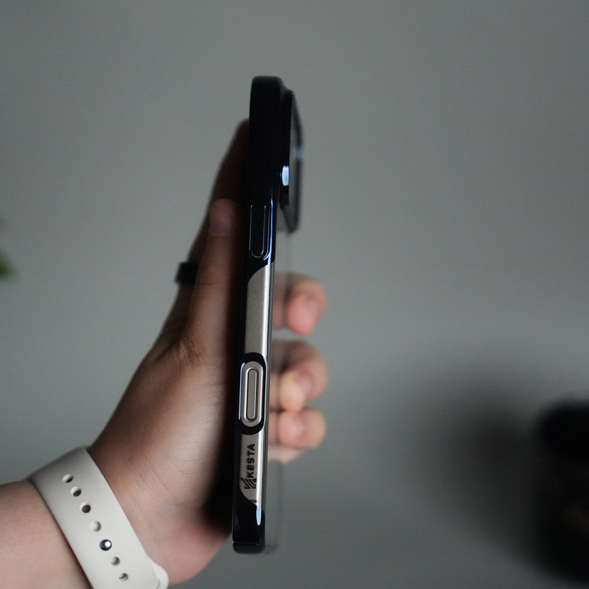 Crafted with electroplated metallic edges and a durable hard back, it blends style and strength for everyday protection.