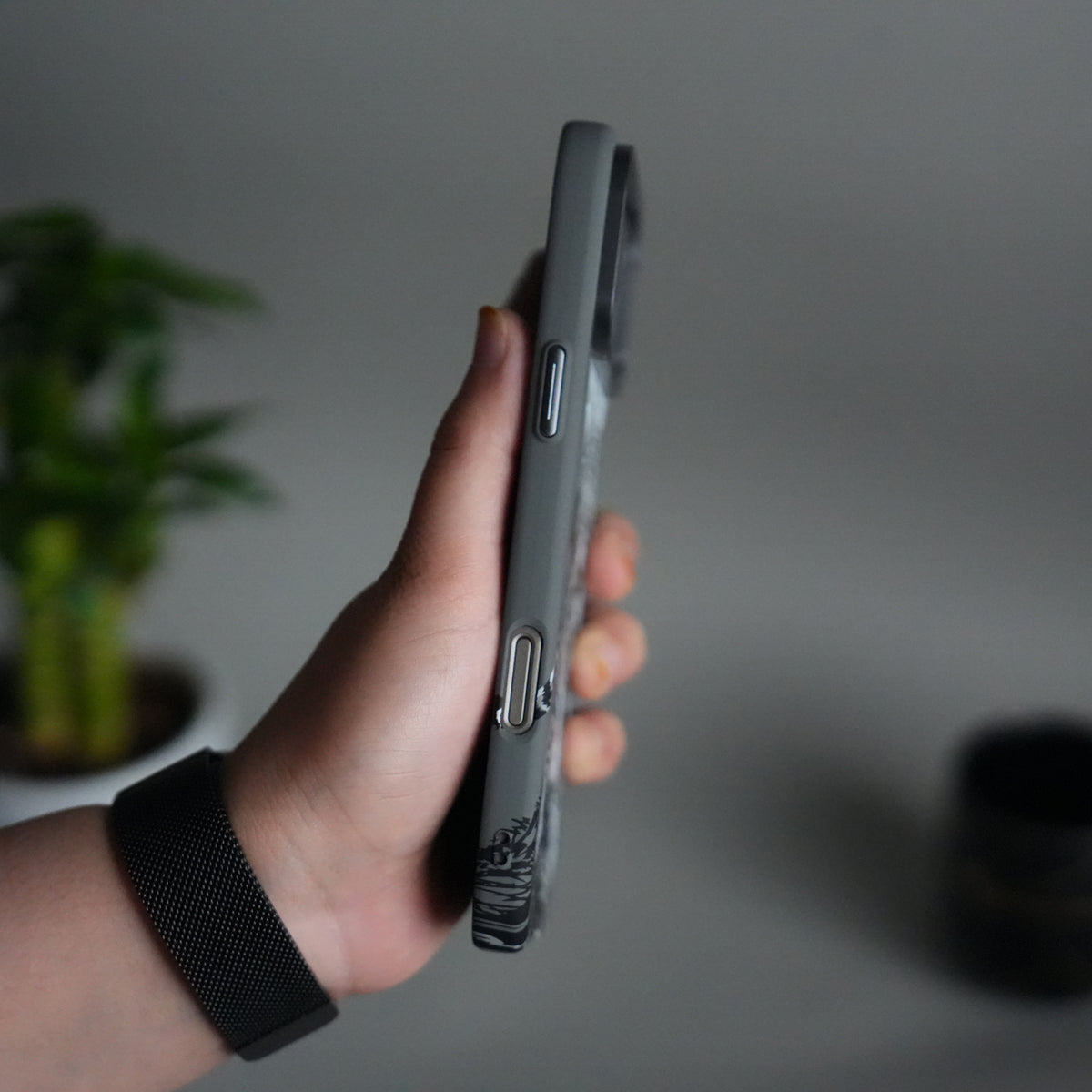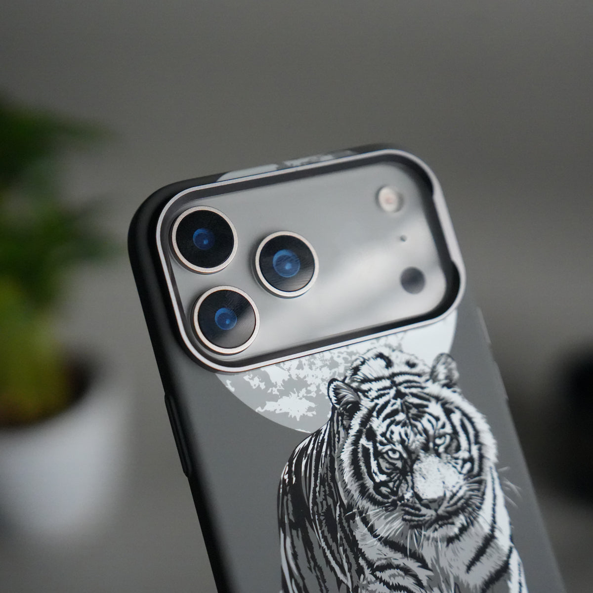 iPhone 17 Pro Max Carbon Fiber Texture Design Hard Pc MagSafe Case Cover (Gray Tiger)