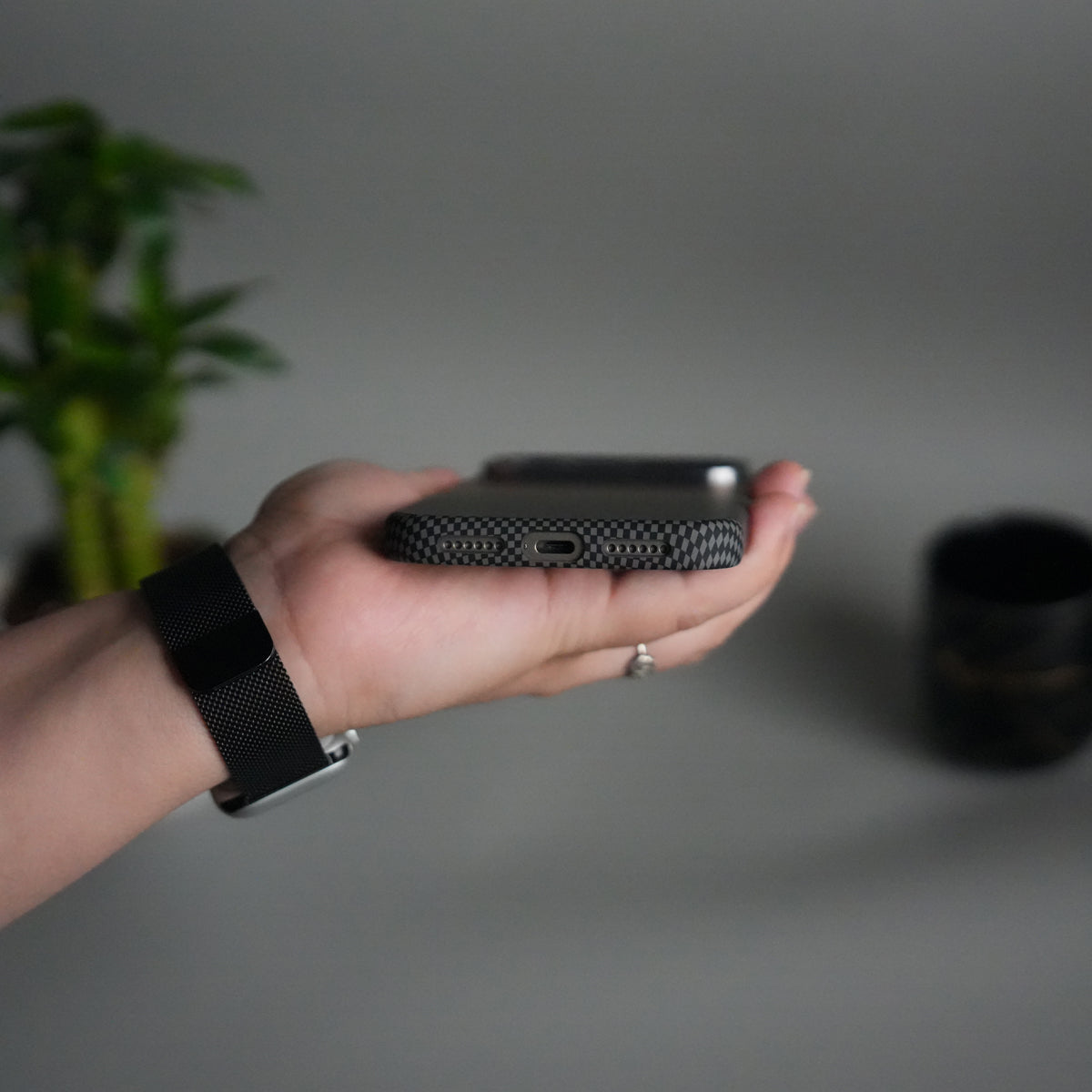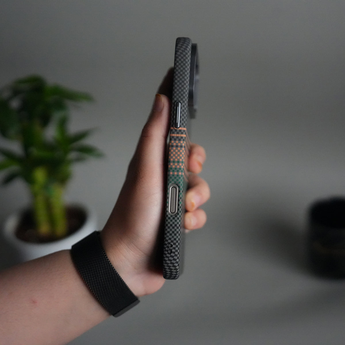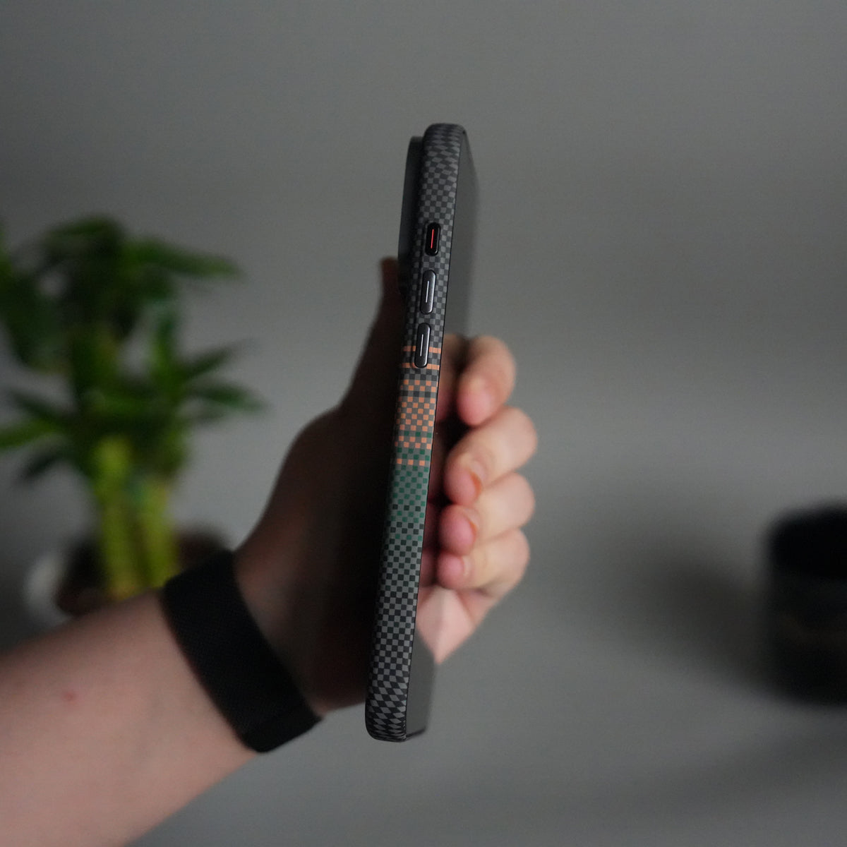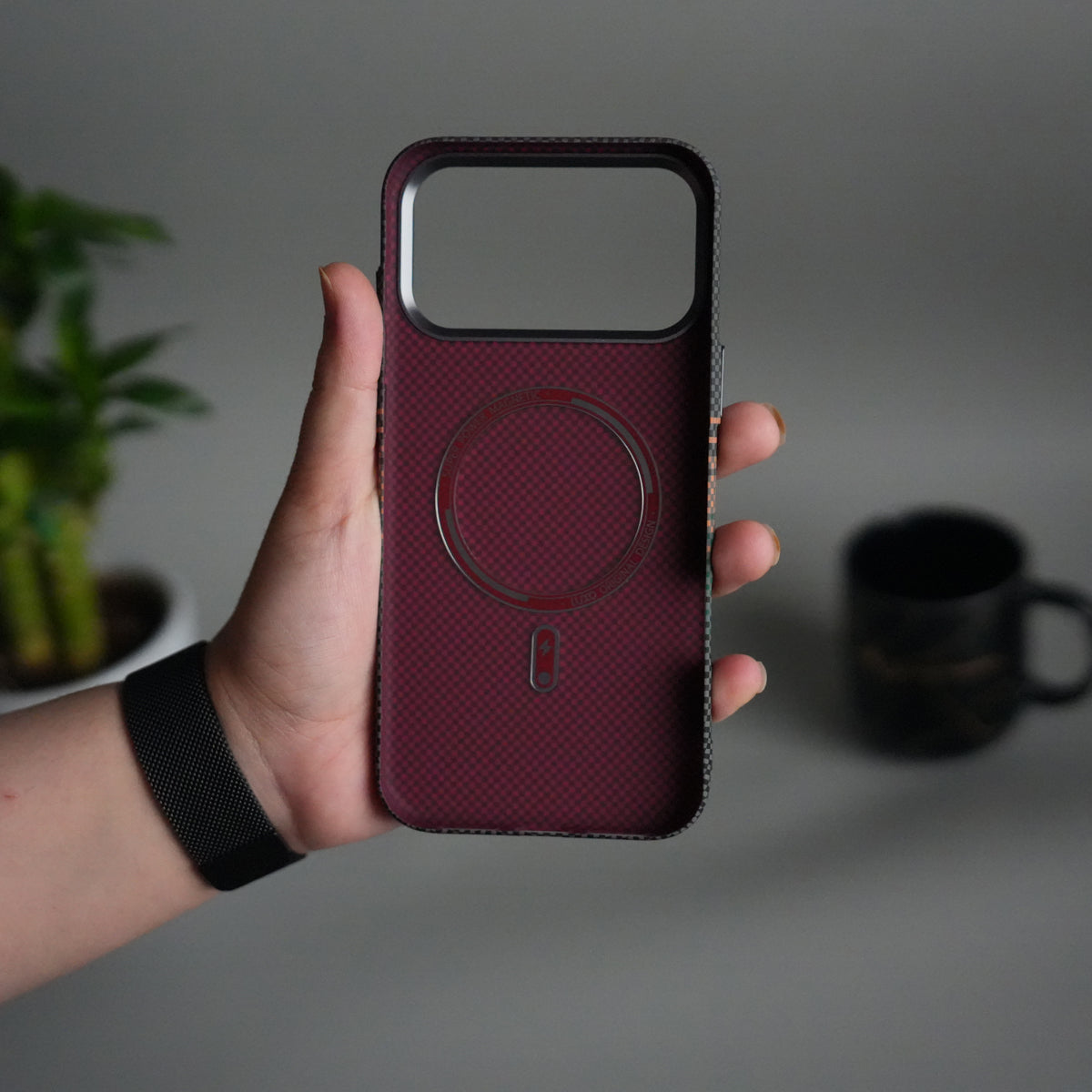 iPhone 17 Pro Max Carbon Fiber Texture Design Hard Pc MagSafe Case Cover (Orange Green)