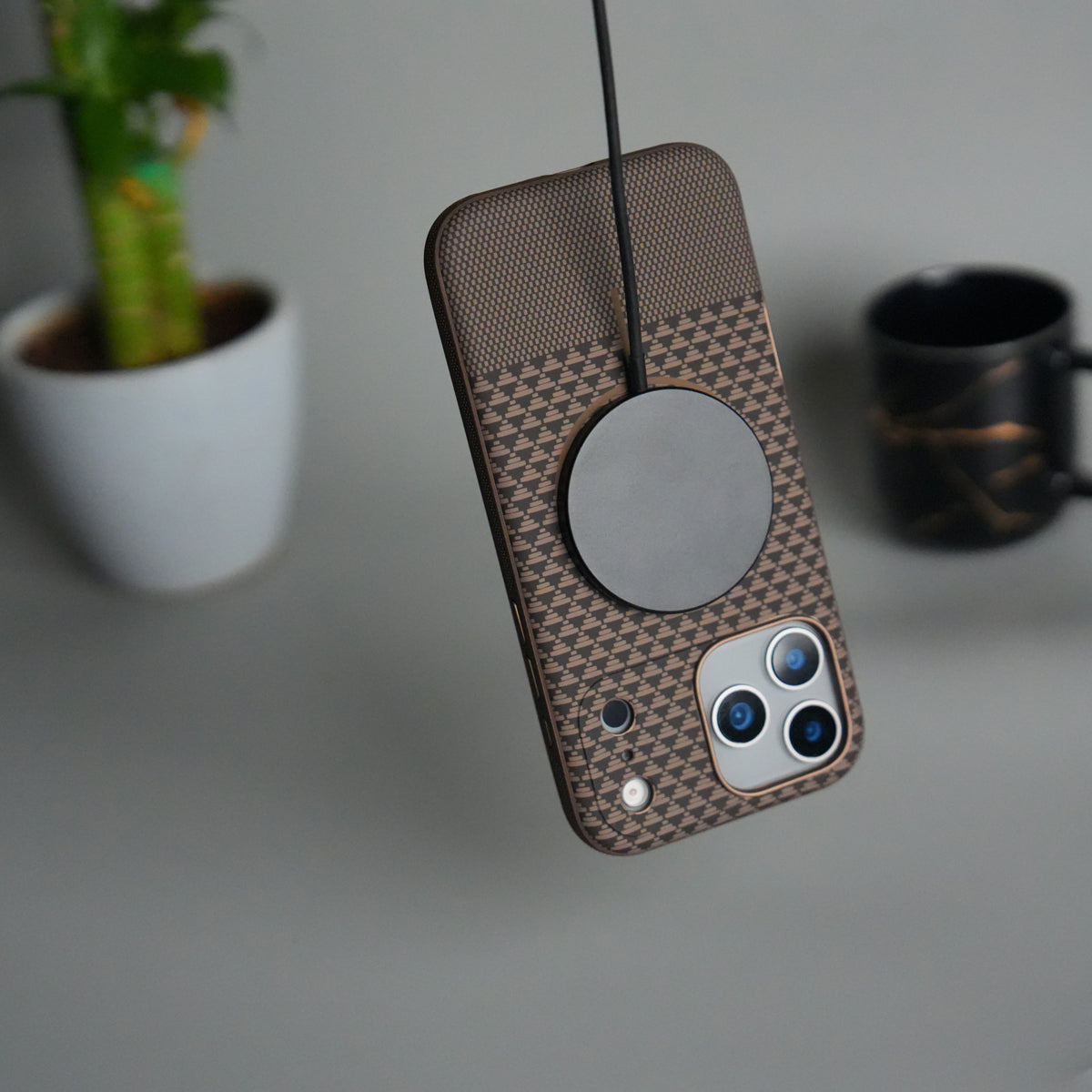 Elevate your iPhone 17 Pro Max with this premium woven texture MagSafe case, designed for both style and performance. The metallic-finish camera ring and precision MagSafe alignment deliver a perfect balance of elegance and function. Its dual-tone design adds a modern touch while ensuring a secure, anti-slip grip for everyday use.