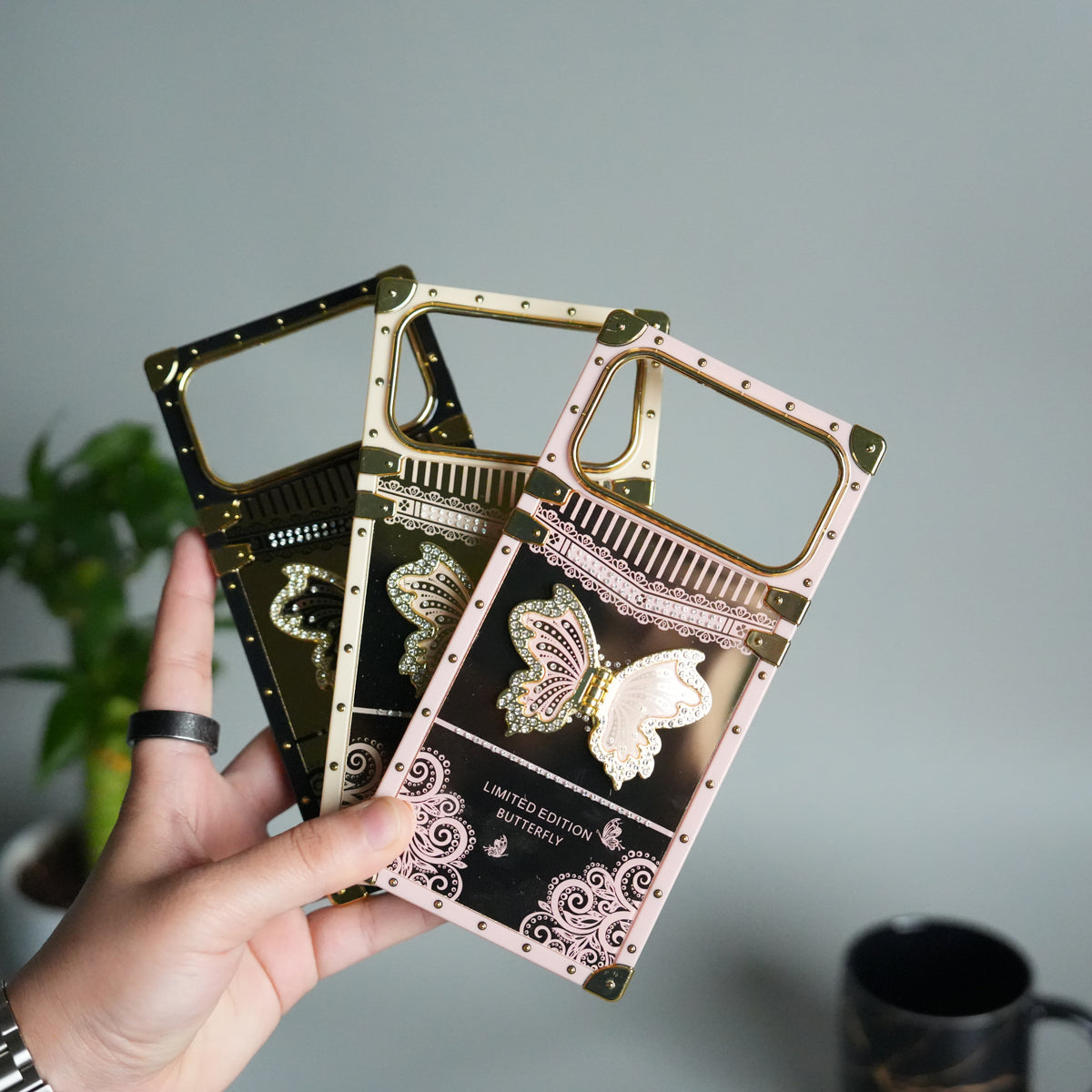 iPhone 17 Series Luxury Butterfly Case | Trunk Frame Shockproof Cover with 3D Butterfly | Premium Limited Edition Design
