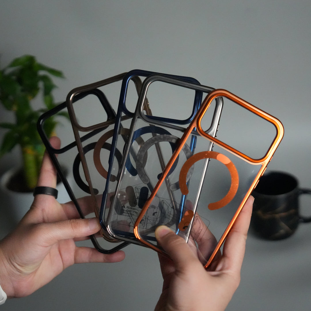 iPhone 17 Pro Transparent Side Chrome Electroplated Plated Magnetic Clear Back Case Covers