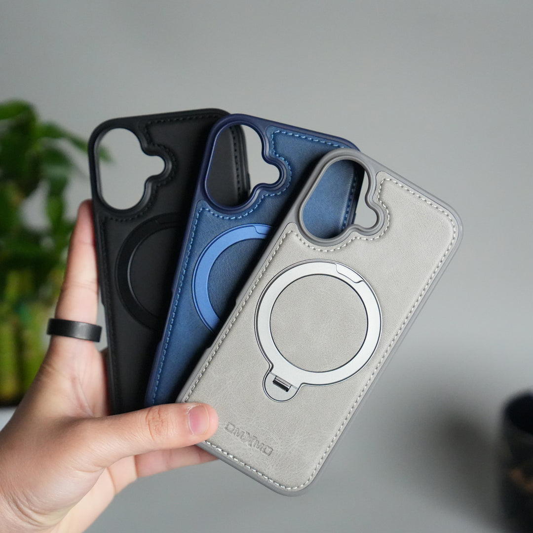 iPhone 17 Series Premium PU Leather Metal MagSafe Ring Case
