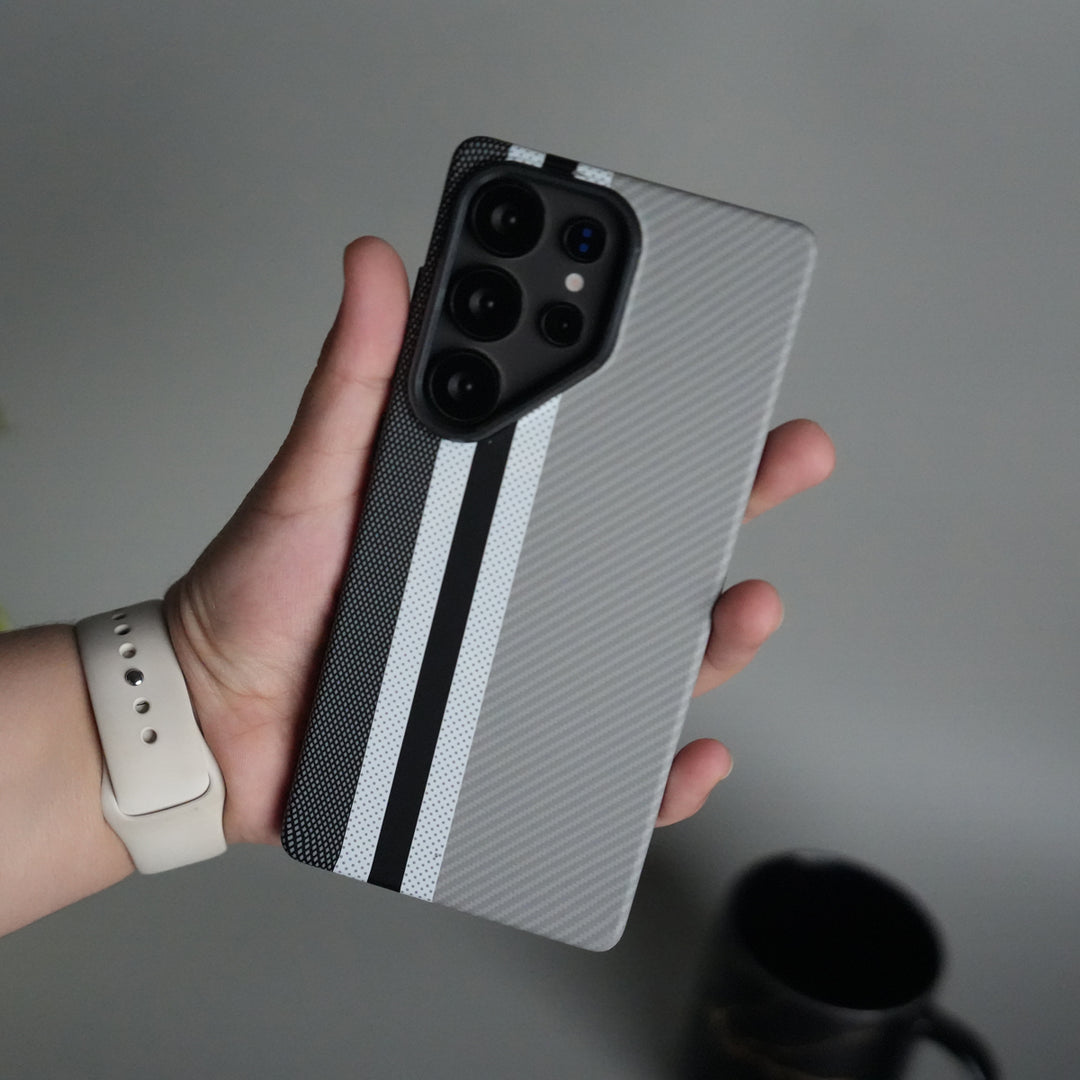 Galaxy S25 Ultra Series Carbon Fiber Texture Aramid Design Hard Pc MagSafe Cover | Stripe Design
