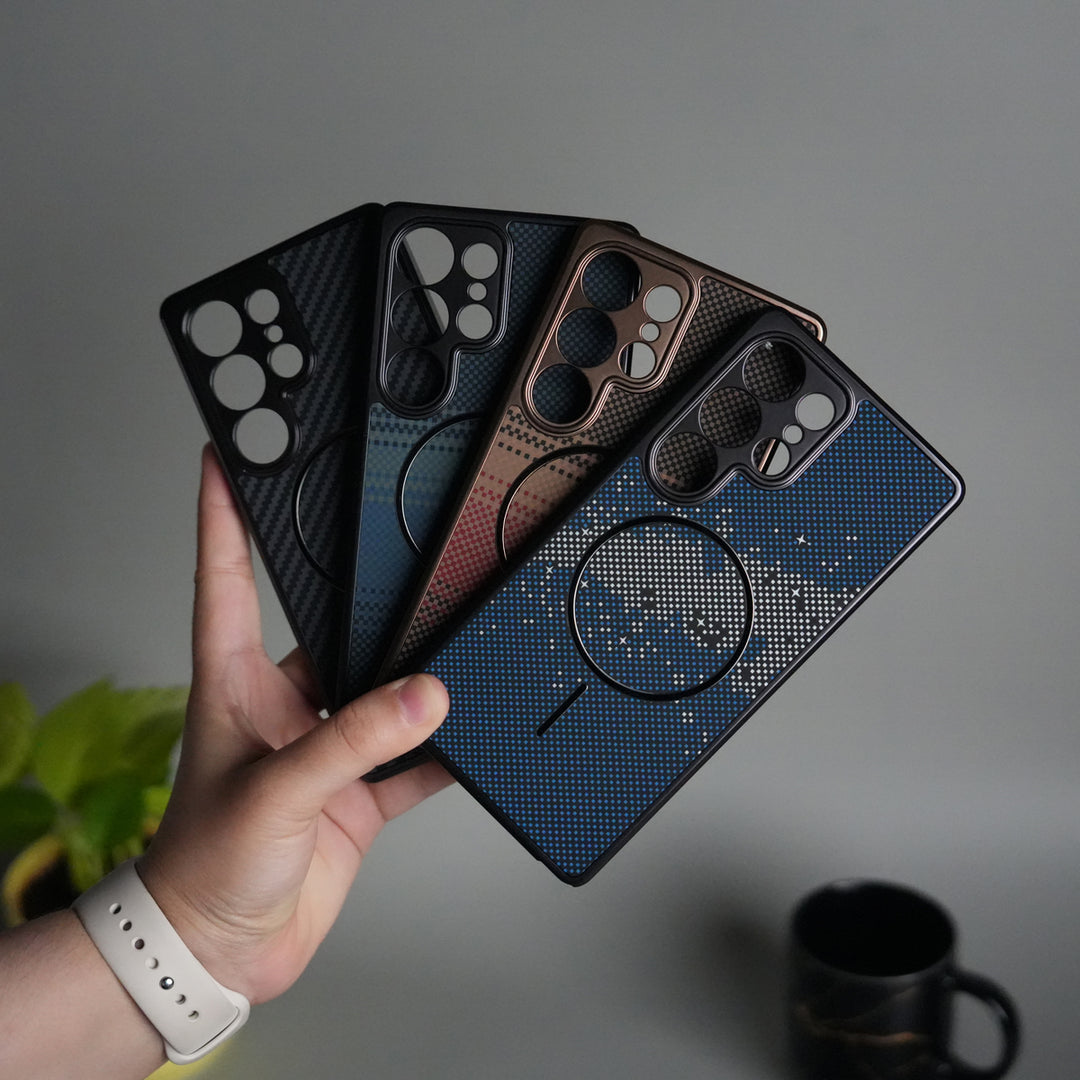 Galaxy S24 Ultra Series Carbon Fiber Texture Aramid Design Hard Pc MagSafe Cover | BlueWhiteLine