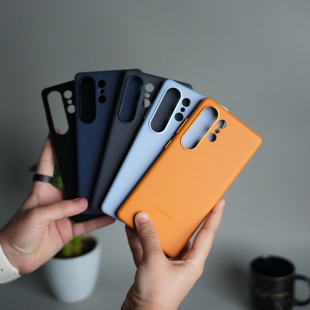 Galaxy S24 ultra Leather Frameless Metal Kickstand Case