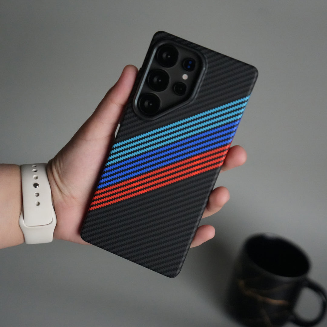 Galaxy S24 Ultra Series Carbon Fiber Texture Aramid Design Hard Pc MagSafe Cover | Stripe Design