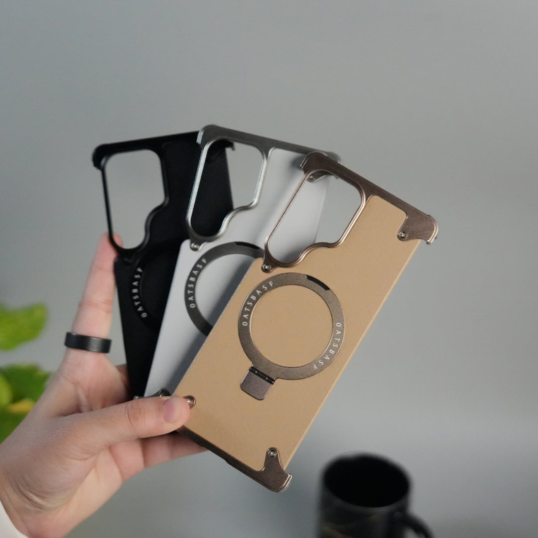 Galaxy S25 ultra Leather Frameless Metal Kickstand Case