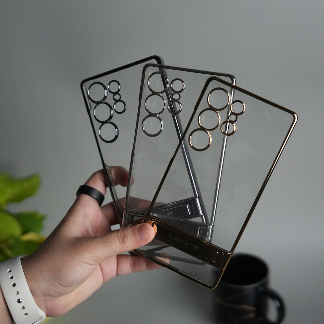 Galaxy S25 Ultra Chrome Plated Transparent Case with Built-in Kickstand