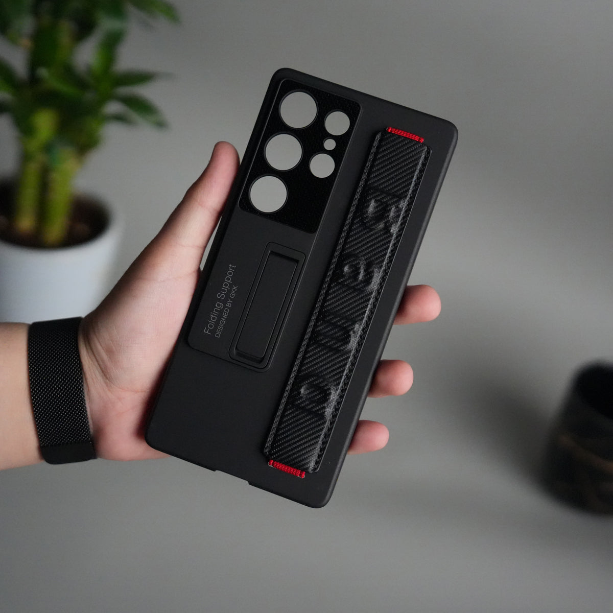 Galaxy S24 Ultra Case with Band Holder & Kickstand | Shockproof Luxury Back Cover | BLACK