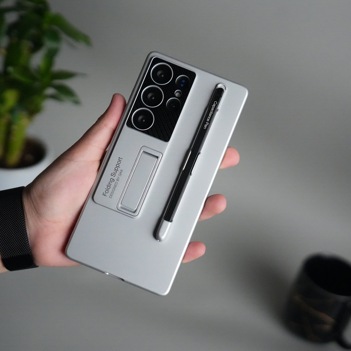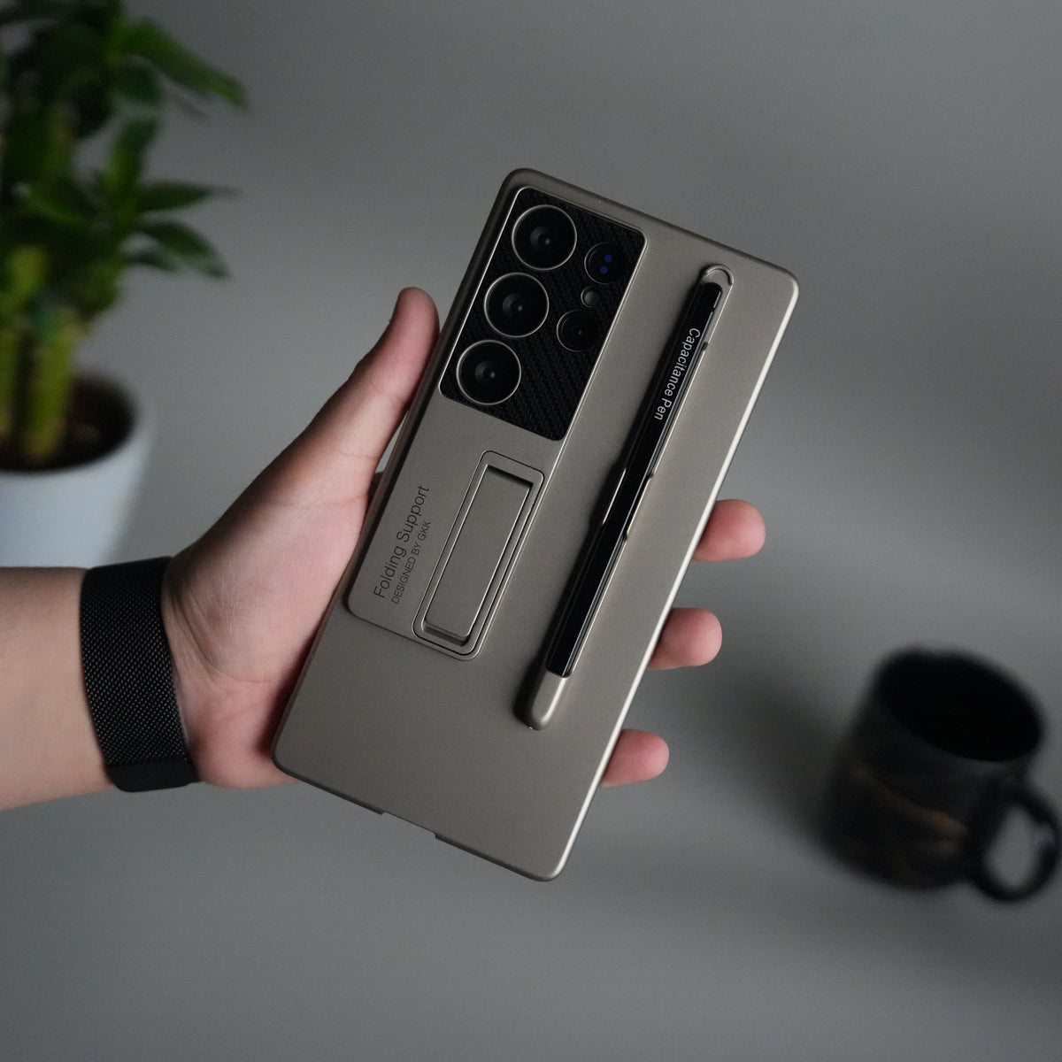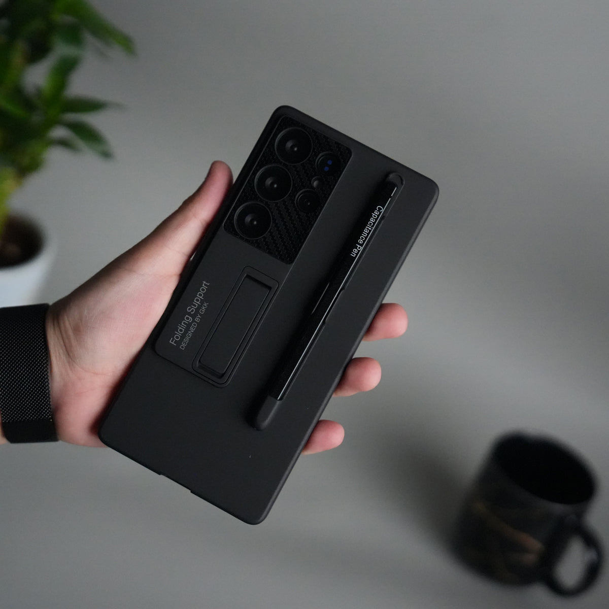 Protect your Galaxy S24 Ultra in style with this multi-functional protective case. Designed for professionals and creators, it features a dedicated S Pen slot for secure storage, a foldable kickstand for hands-free viewing, and a slim shockproof design that doesn’t add bulk. The premium finish gives your device a modern, elegant look while ensuring everyday protection.