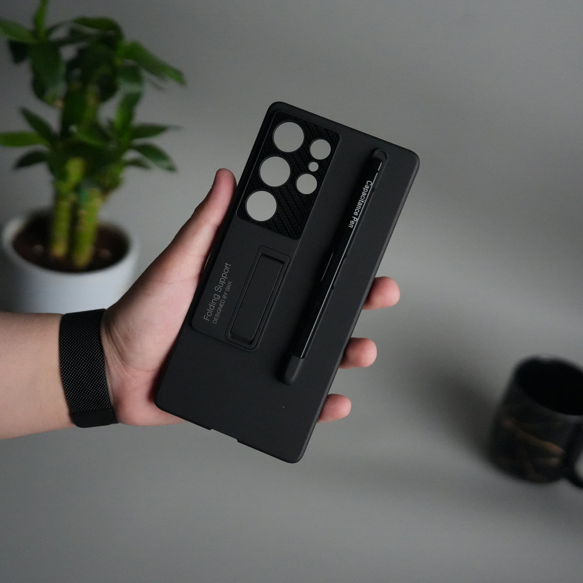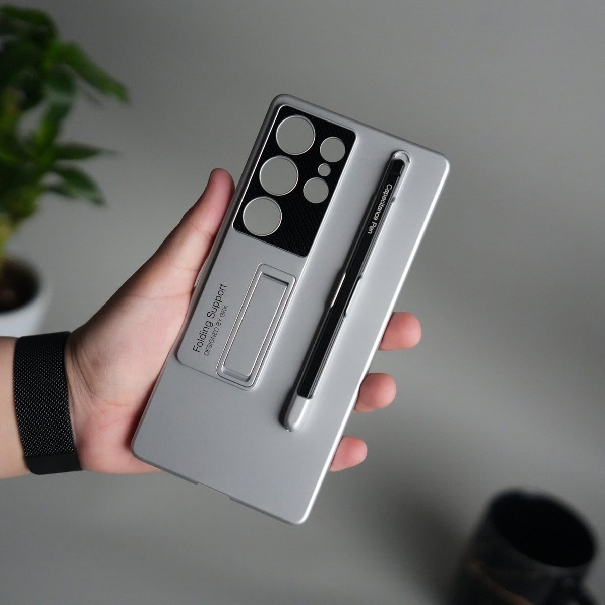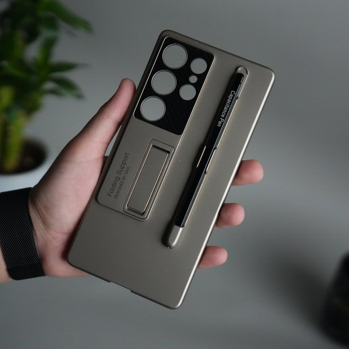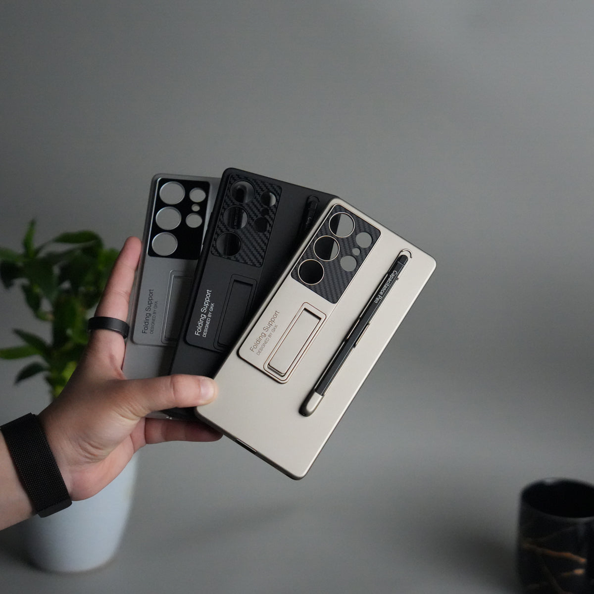 Protect your Galaxy S24 Ultra in style with this multi-functional protective case. Designed for professionals and creators, it features a dedicated S Pen slot for secure storage, a foldable kickstand for hands-free viewing, and a slim shockproof design that doesn’t add bulk. The premium finish gives your device a modern, elegant look while ensuring everyday protection.