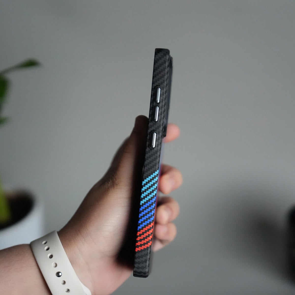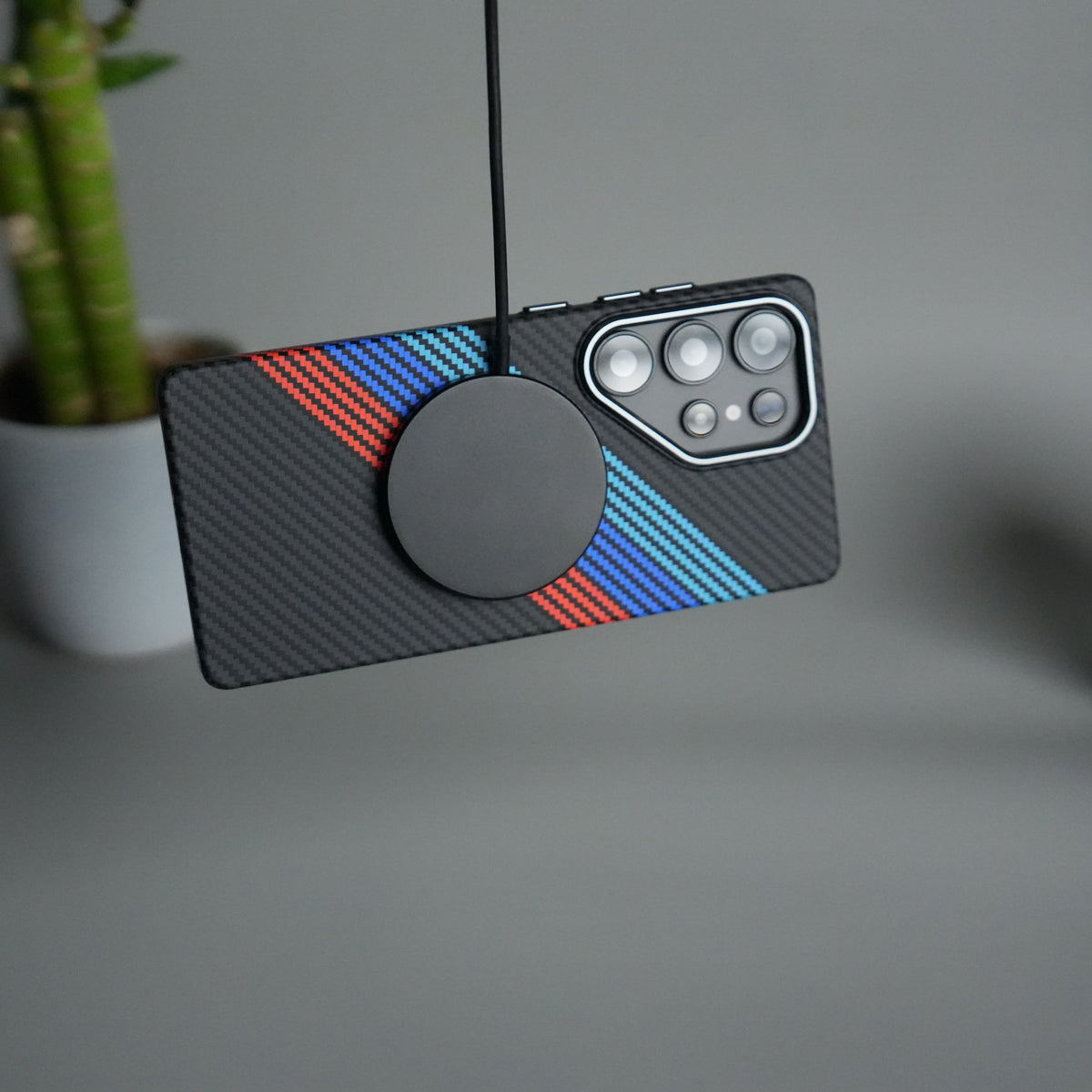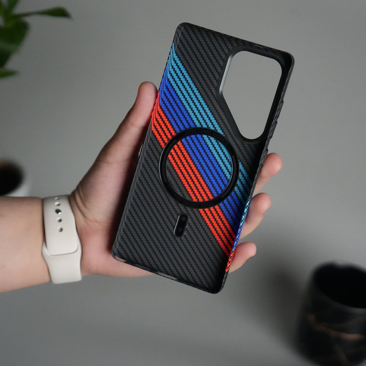Galaxy S25 Ultra Carbon Fiber Texture Design Hard Pc MagSafe Case Cover (Cross Blue Red)