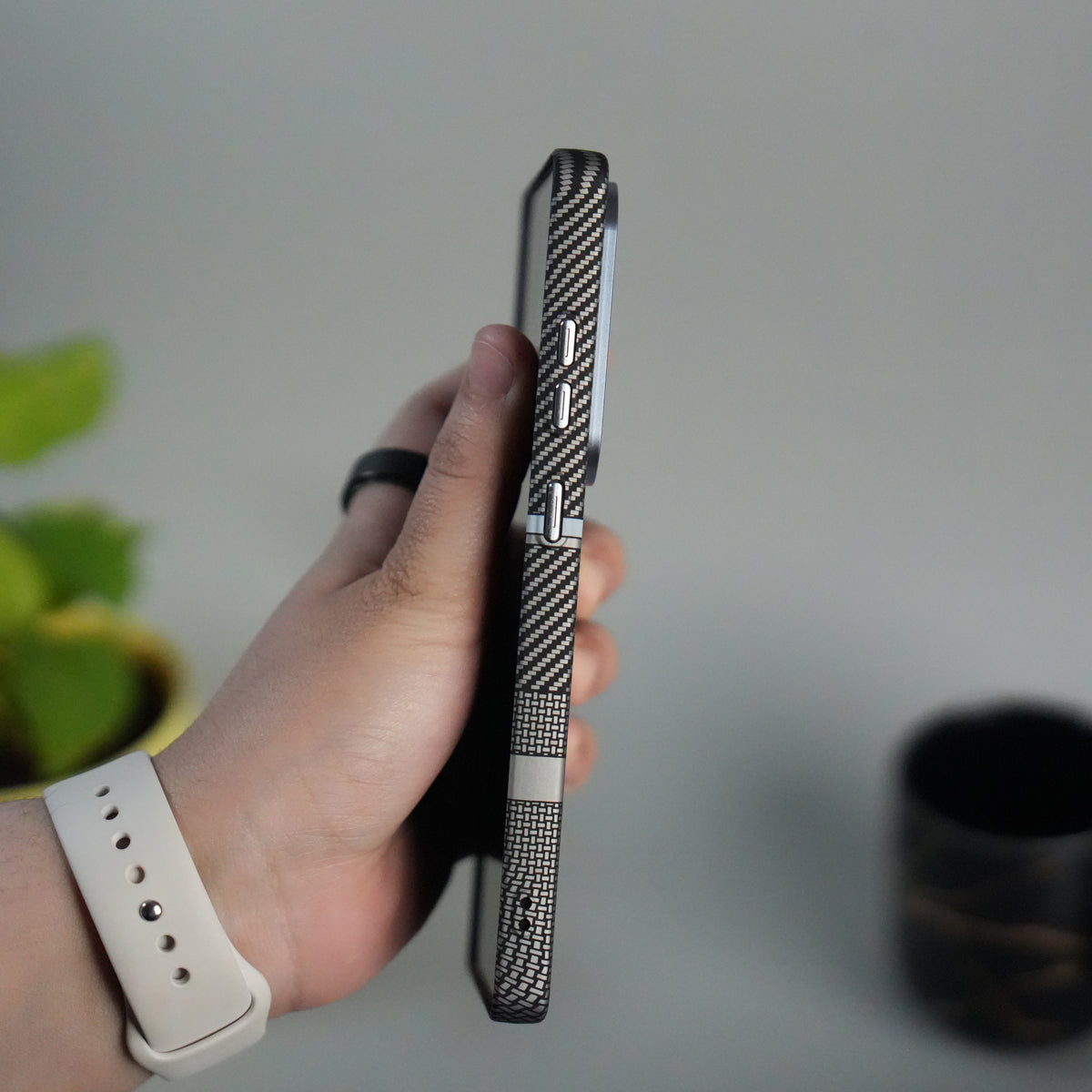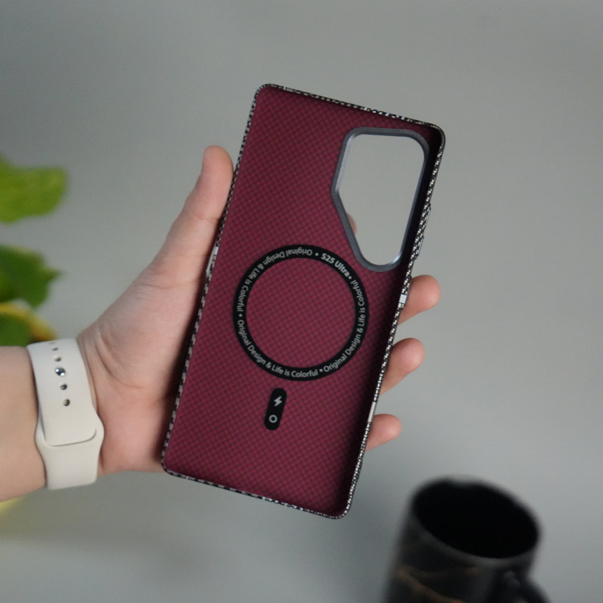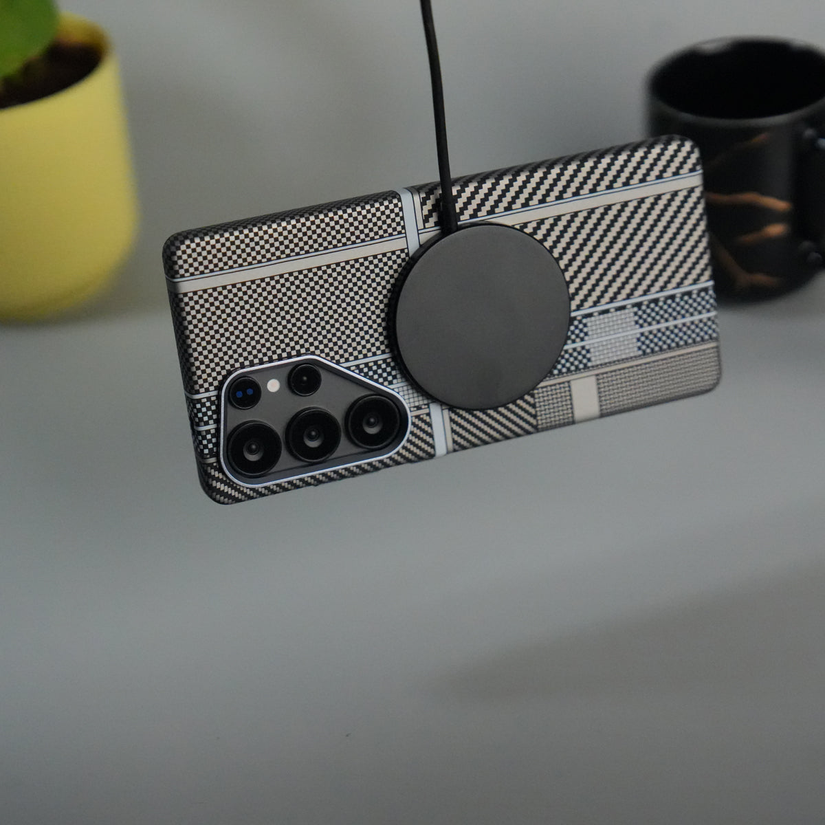 Galaxy S25 Ultra Carbon Fiber Texture Design Hard Pc MagSafe Case Cover MixLine Silver