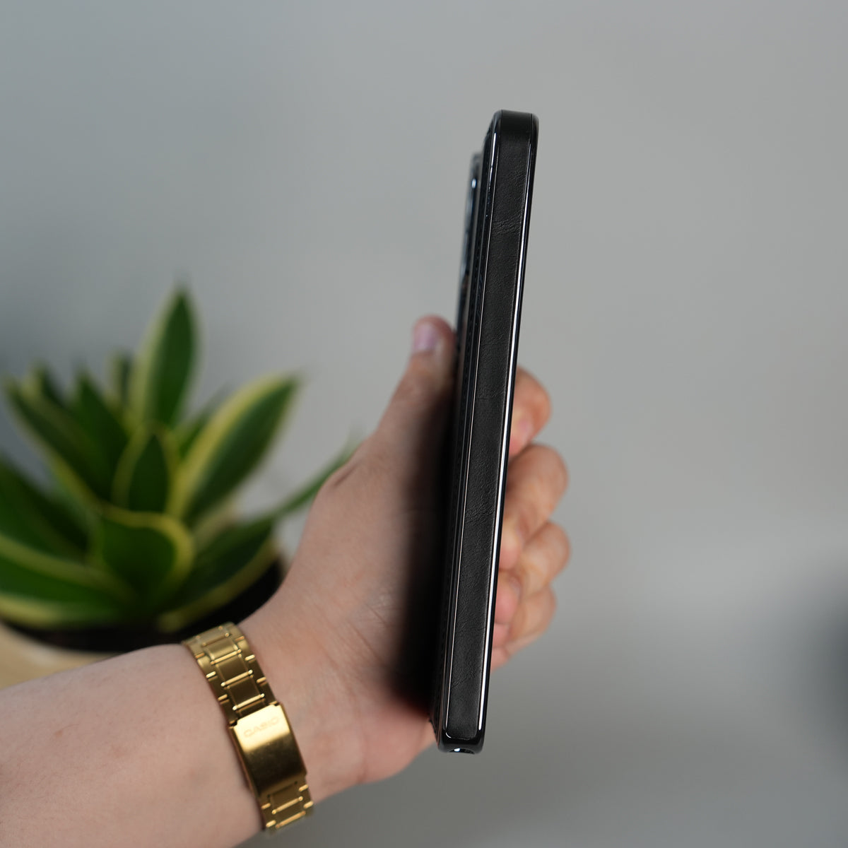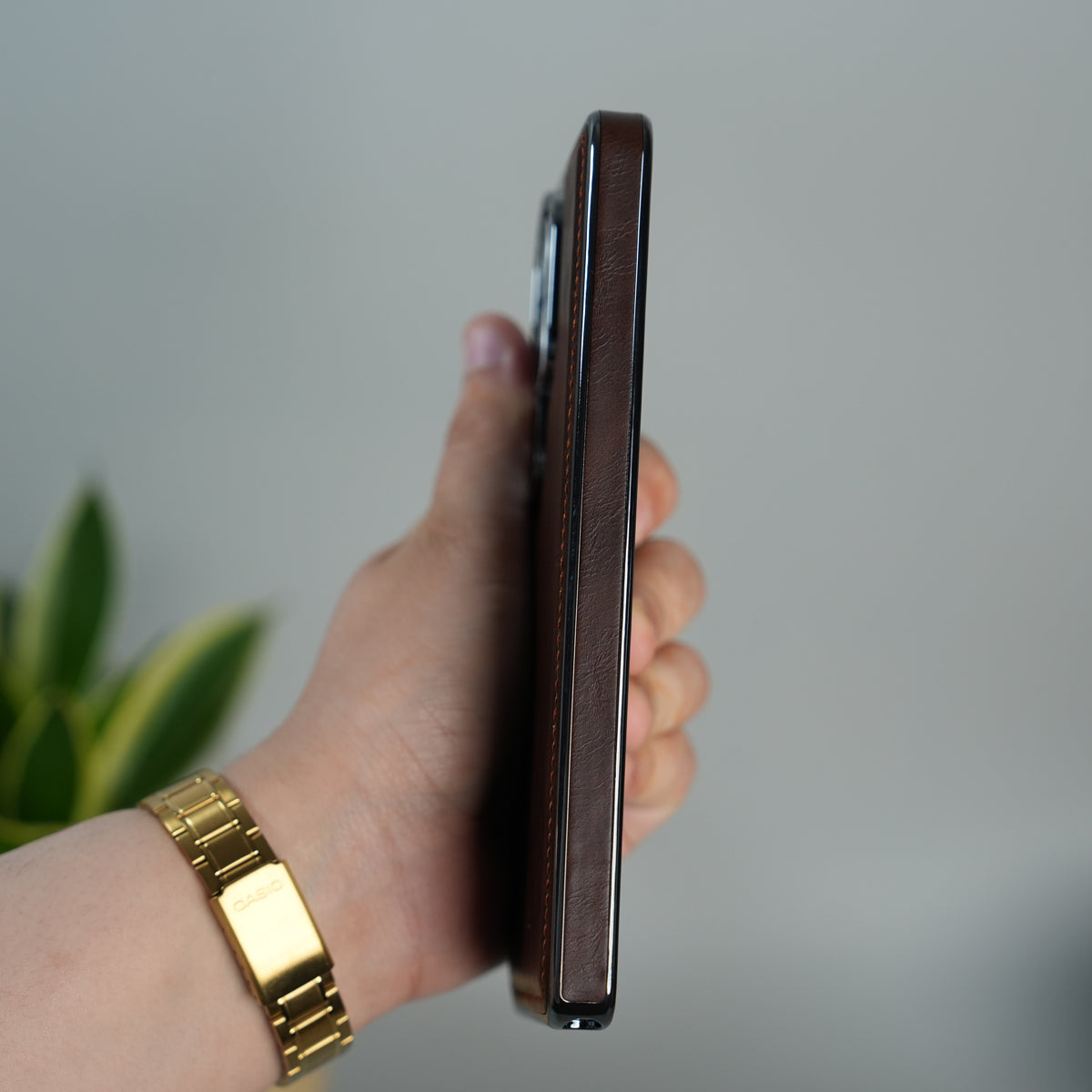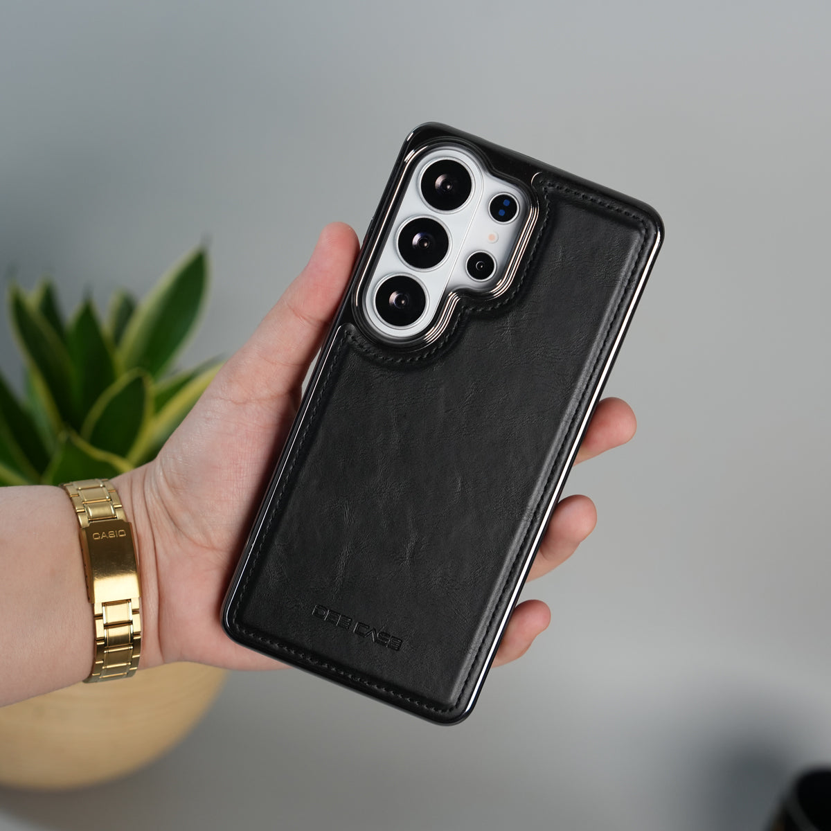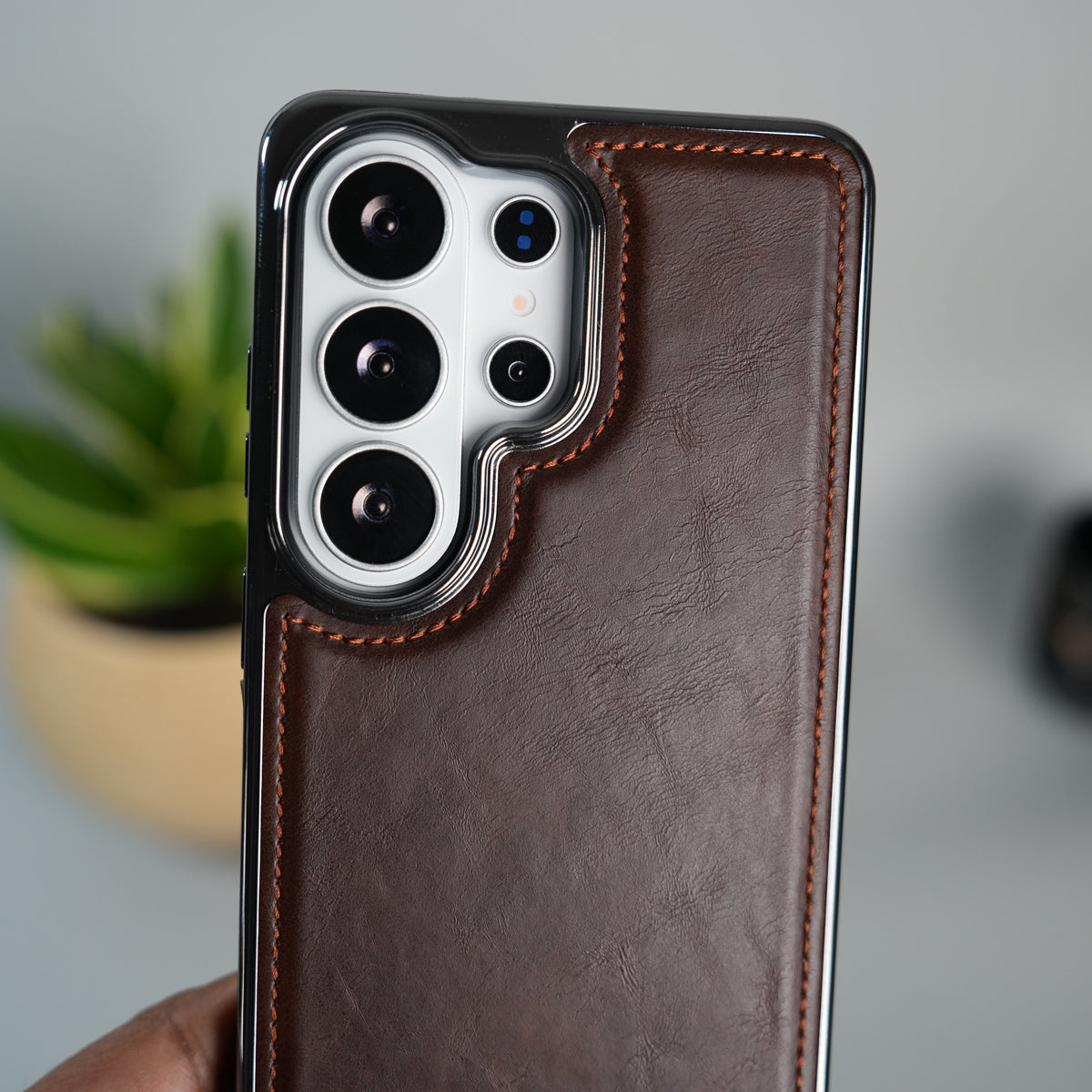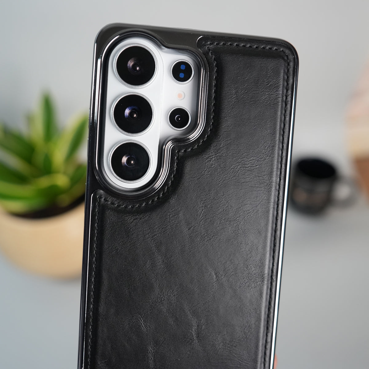 Galaxy S25 Ultra Leather Case | Classic Side Chrome Back Cover