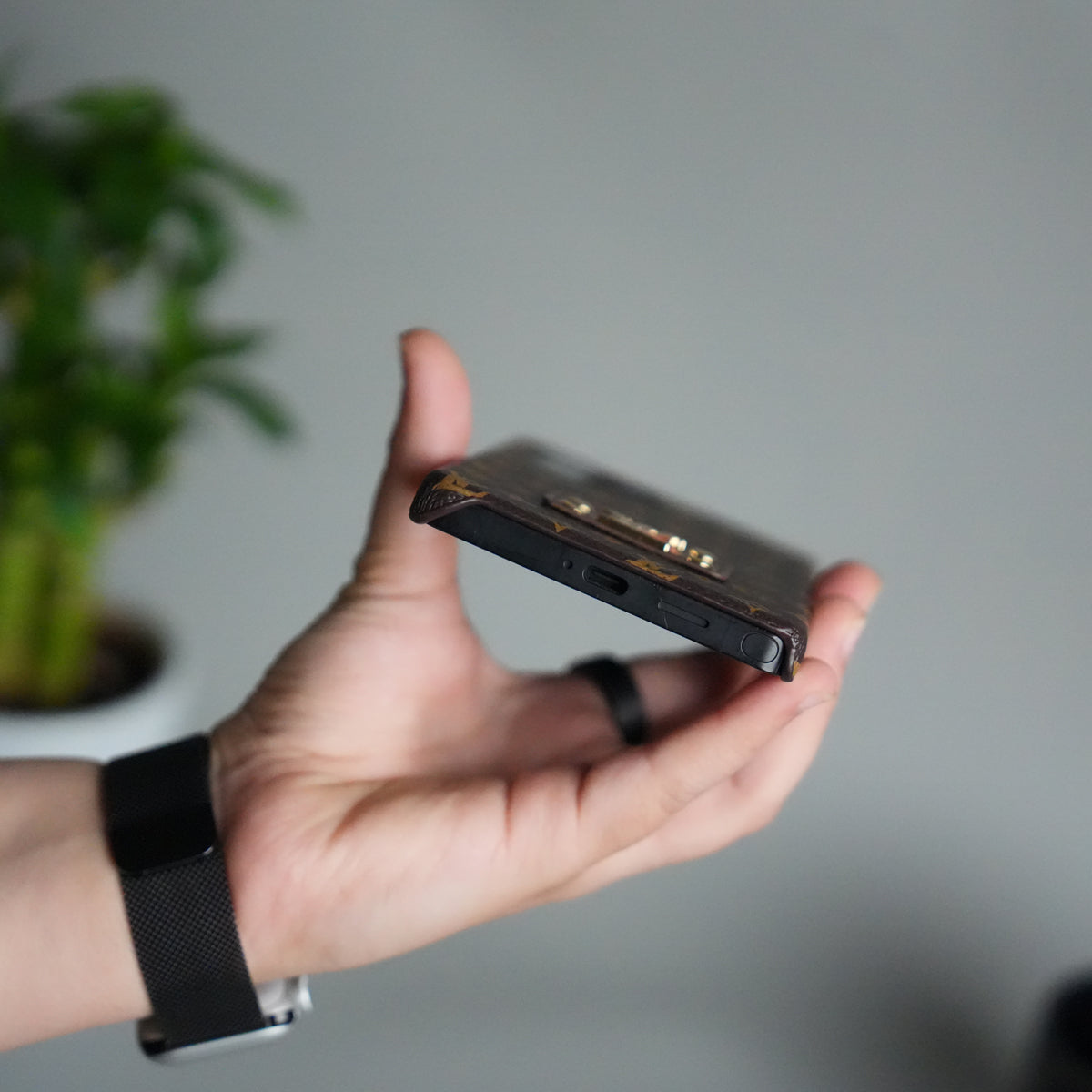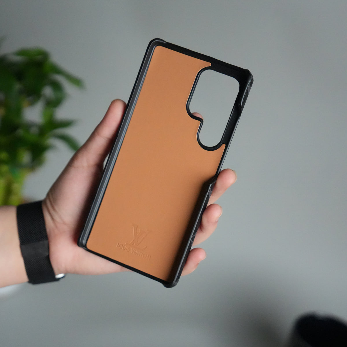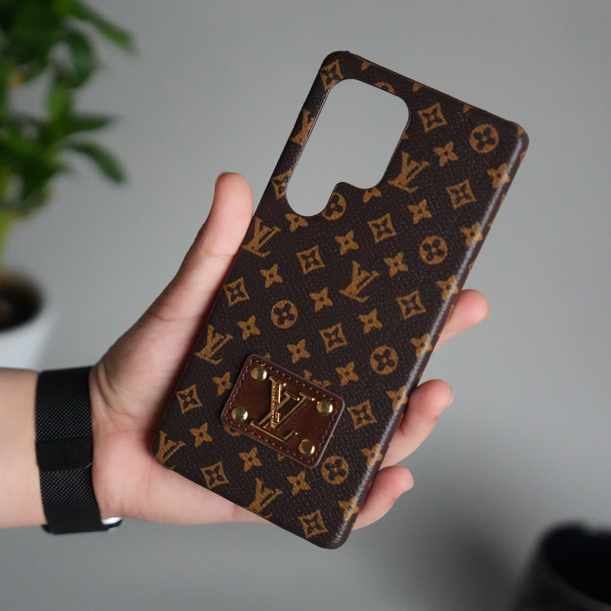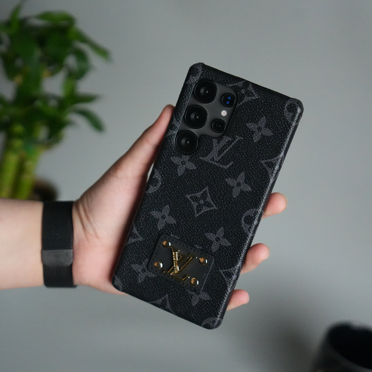 Upgrade your Galaxy S25 Ultra with this luxury leather-pattern case, inspired by classic designer textures. Crafted from durable hard material with a soft leather touch, it provides a premium feel and solid protection. The gold metal logo plate adds a bold, elegant accent that makes your phone stand out in style.