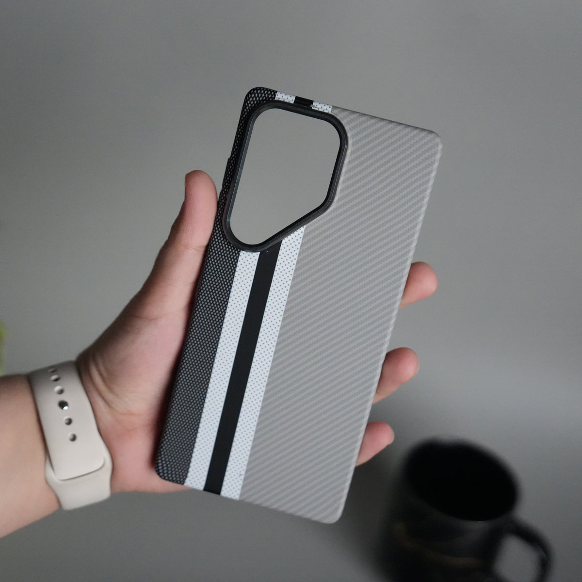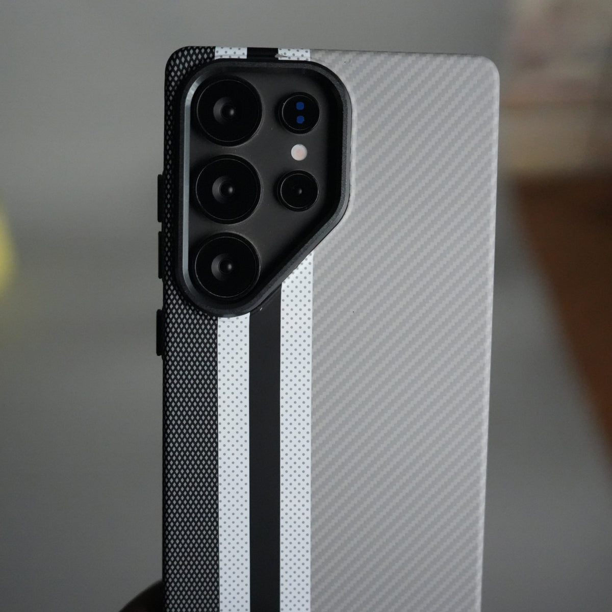 Galaxy S25 Ultra Series Carbon Fiber Texture Aramid Design Hard Pc MagSafe Cover | Stripe Design