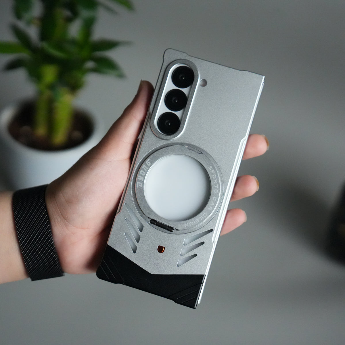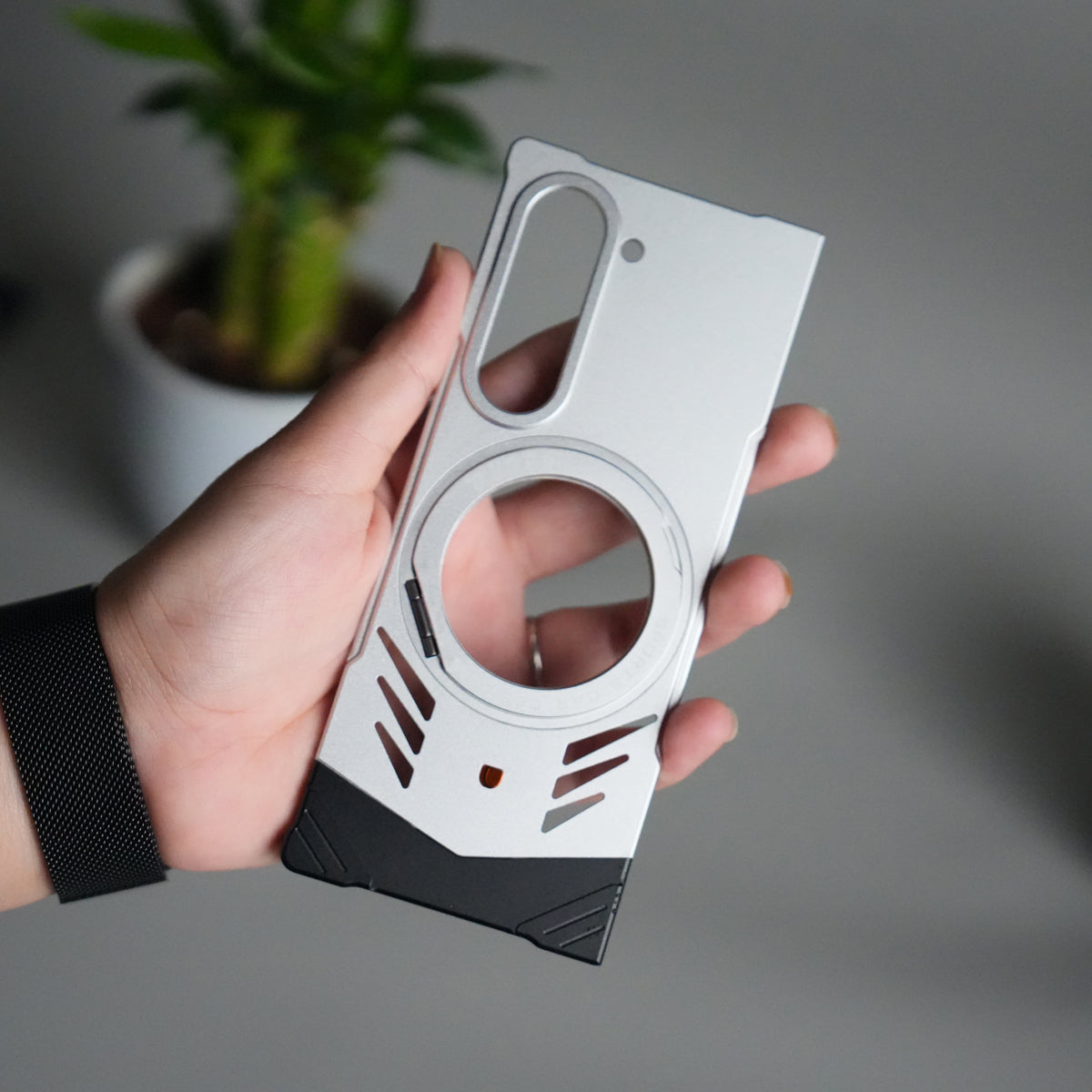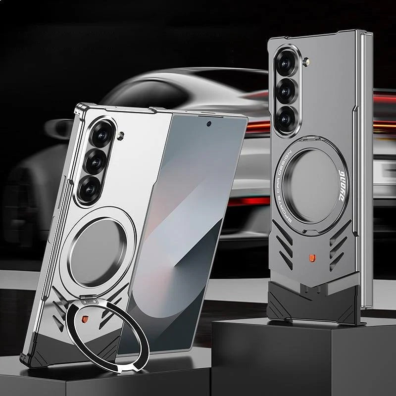 Galaxy Z Fold 6 Magnetic Aluminum Alloy Metal Rimless Frame Heat Dissipation Stand Phone Case