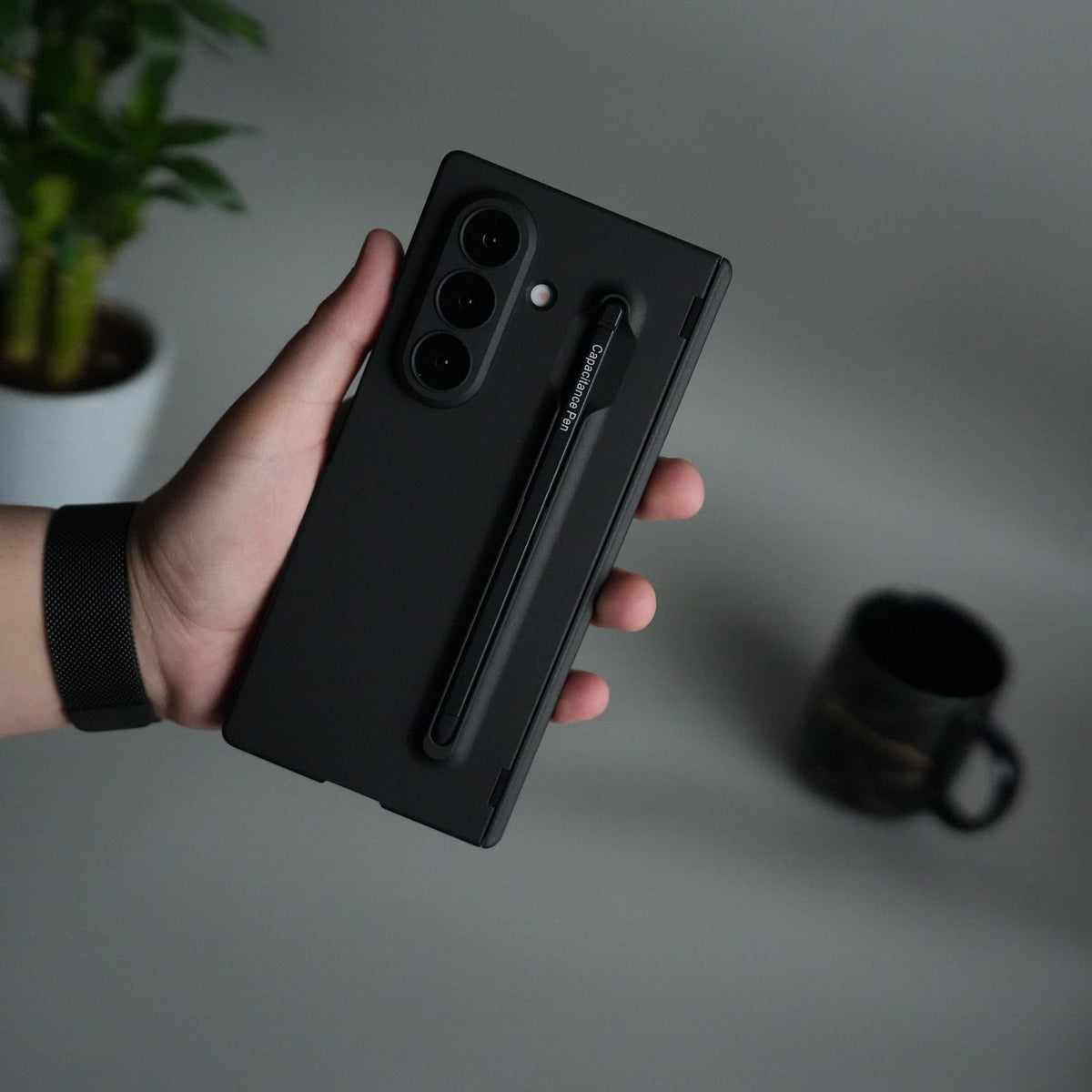 Protect your Samsung Galaxy Z Fold 7 in sleek style with this premium matte hard case featuring an integrated S-Pen holder and front glass protection. Designed for perfect fold alignment, it offers complete 360° protection without adding bulk. The matte finish provides a smooth, fingerprint-free grip while keeping your phone safe from scratches and drops.