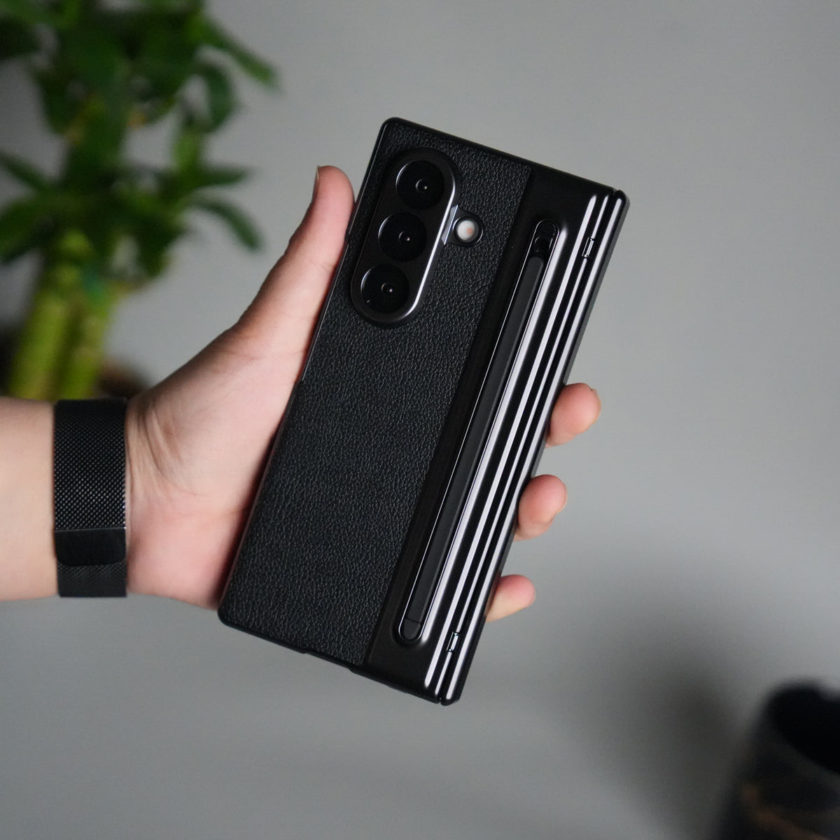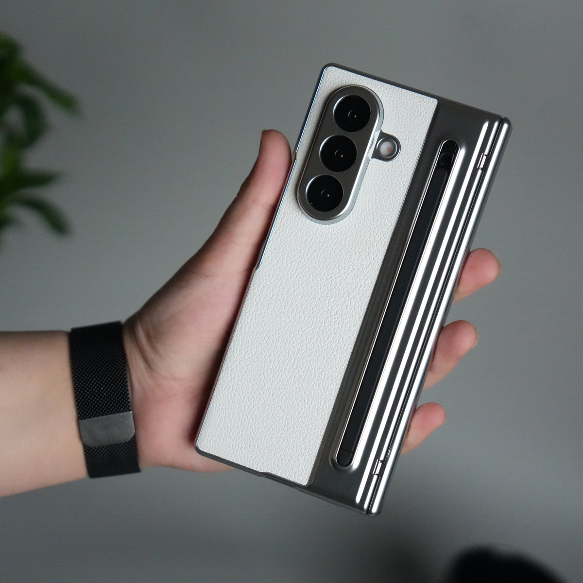 Samsung Galaxy Z Fold 6 Leather Texture front Glass Protection Hinge Case Folding Cover